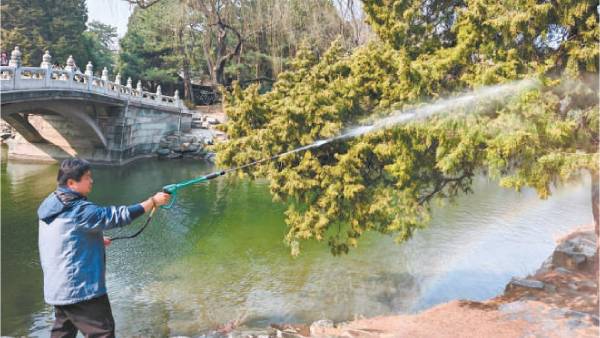 頤和園園林科技科主任趙曉燕介紹,目前已在重點(diǎn)區(qū)域每日開展三次噴水洗樹降塵及地面濕化清掃,全力應(yīng)對(duì)花粉爆發(fā)高峰期,最大限度降低空氣中花粉濃度。