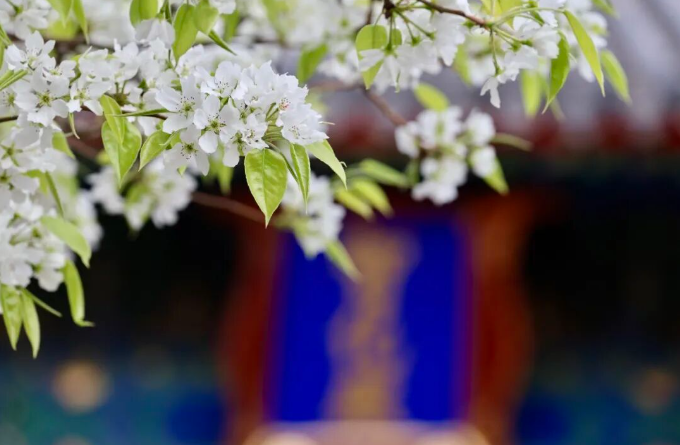 粗壯的梨樹(shù)舒展虬勁,潔白的花簇如積雪般壓滿(mǎn)枝頭,形成絕美的“花瀑”。潔白無(wú)瑕的梨花與寺院古樸的紅墻相互映襯,漫步其中,不僅僅是賞花,更是一場(chǎng)跨越百年的時(shí)空對(duì)話(huà)。