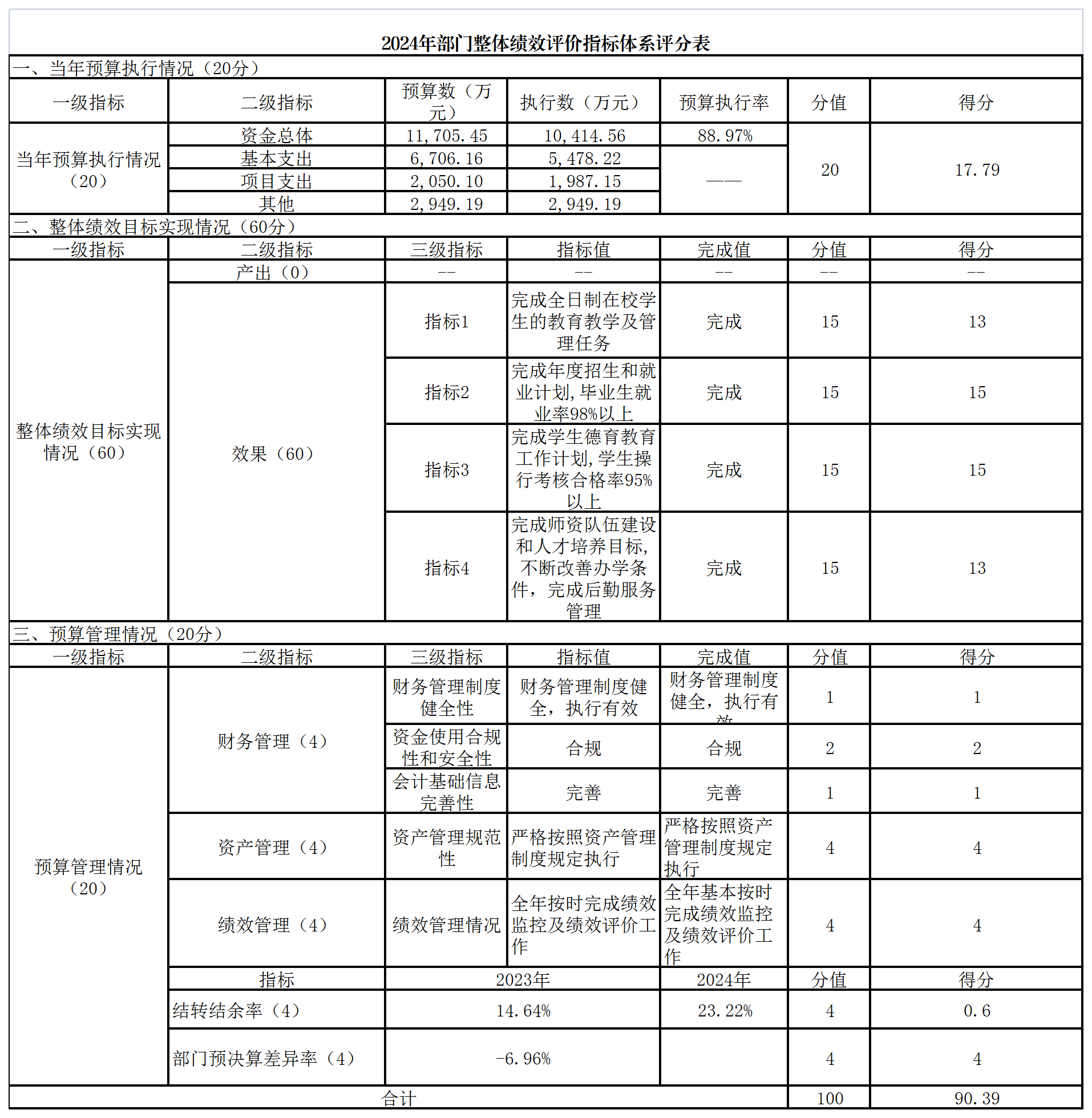 (三)整體績效目標實現(xiàn)情況