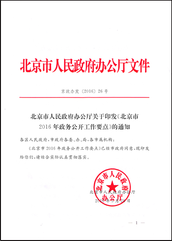 2016年北京市政府信息公開工作年度報告