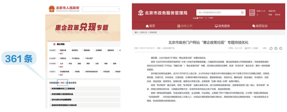 制發(fā)《北京市深化政務(wù)公開促進(jìn)政策服務(wù)工作辦法》,細(xì)化政策管理、集成、兌現(xiàn)、評價(jià)等9個(gè)環(huán)節(jié)要求,提出政企聯(lián)絡(luò)、惠企政策匯集、政策信息協(xié)同等5項(xiàng)機(jī)制。