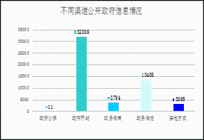 通過不同渠道和方式公開政府信息的情況,包括政府公報(bào)公開政府信息11條;政府網(wǎng)站公開政府信息32038條;政務(wù)微博公開政府信息3794條;政務(wù)微信公開政府信息13405條;其他方式公開政府信息3065條。