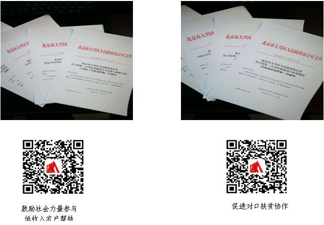 扶貧協(xié)作工作方面。我區(qū)積極制發(fā)《大興區(qū)保障對(duì)口扶貧協(xié)作的農(nóng)業(yè)政策措施的通知》(京興政辦發(fā)〔2018〕64號(hào))和《大興區(qū)鼓勵(lì)社會(huì)力量參與低收入農(nóng)戶幫扶工作政策措施的通知》(京興政辦發(fā)〔2018〕63號(hào))文件,并通過政府網(wǎng)站主動(dòng)公開。