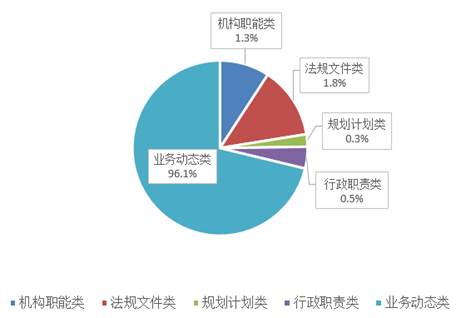 2018年,市科委主動公開政府信息1287條,全部通過政府網(wǎng)站發(fā)布,主動公開的信息數(shù)量同比增長14%。其中:2018年新增業(yè)務(wù)動態(tài)類信息1237條,占比96.1%;法規(guī)文件類信息23條,占比1.8%;機構(gòu)職能類信息16條,占比1.3%;行政職責(zé)類信息7條,占比0.5%;規(guī)劃計劃類信息4條,占比0.3%。首都之窗轉(zhuǎn)載市科委政府信息136條。