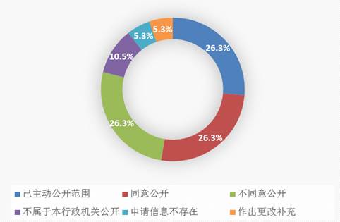 “屬于已主動公開范圍”5項,占總數(shù)的26.3%,市科委及時告知申請人獲取信息的途徑。