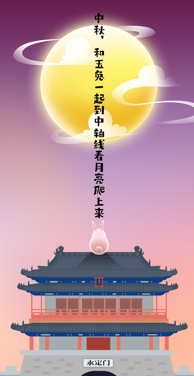 中秋佳節(jié),住在月宮的玉兔偷偷來到凡間,想要一覽北京城中軸線的風(fēng)采。