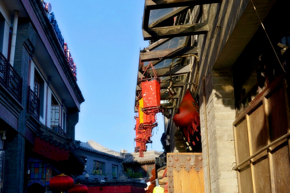 煙袋斜街位于地安門外大街鼓樓前,什剎海前海北側(cè),東起地安門大街,西至小石碑胡同與鴉兒胡同相連,北起大石碑胡同,南至前海北沿,街區(qū)占地14公頃。此街東西斜形走向,全長232米,寬5—6米,街道兩側(cè)建筑典雅樸素,頗具明清傳統(tǒng)風(fēng)格,其前店后居的形式呈現(xiàn)出古風(fēng)猶存的市井風(fēng)情,充分展現(xiàn)出濃郁的老北京傳統(tǒng)風(fēng)貌。煙袋斜街出現(xiàn)于元代,與元大都的建設(shè)休戚與共。劉秉忠修建大都城使鼓樓地區(qū)形成商業(yè)中心,郭守敬開鑿?fù)ɑ莺邮狗e水潭成為北京的古海港,周邊地區(qū)形成斜街。隨著河道形成街巷,人們?yōu)榱朔奖愠烦鲂校枚弥?,走出了煙袋斜街?/p>