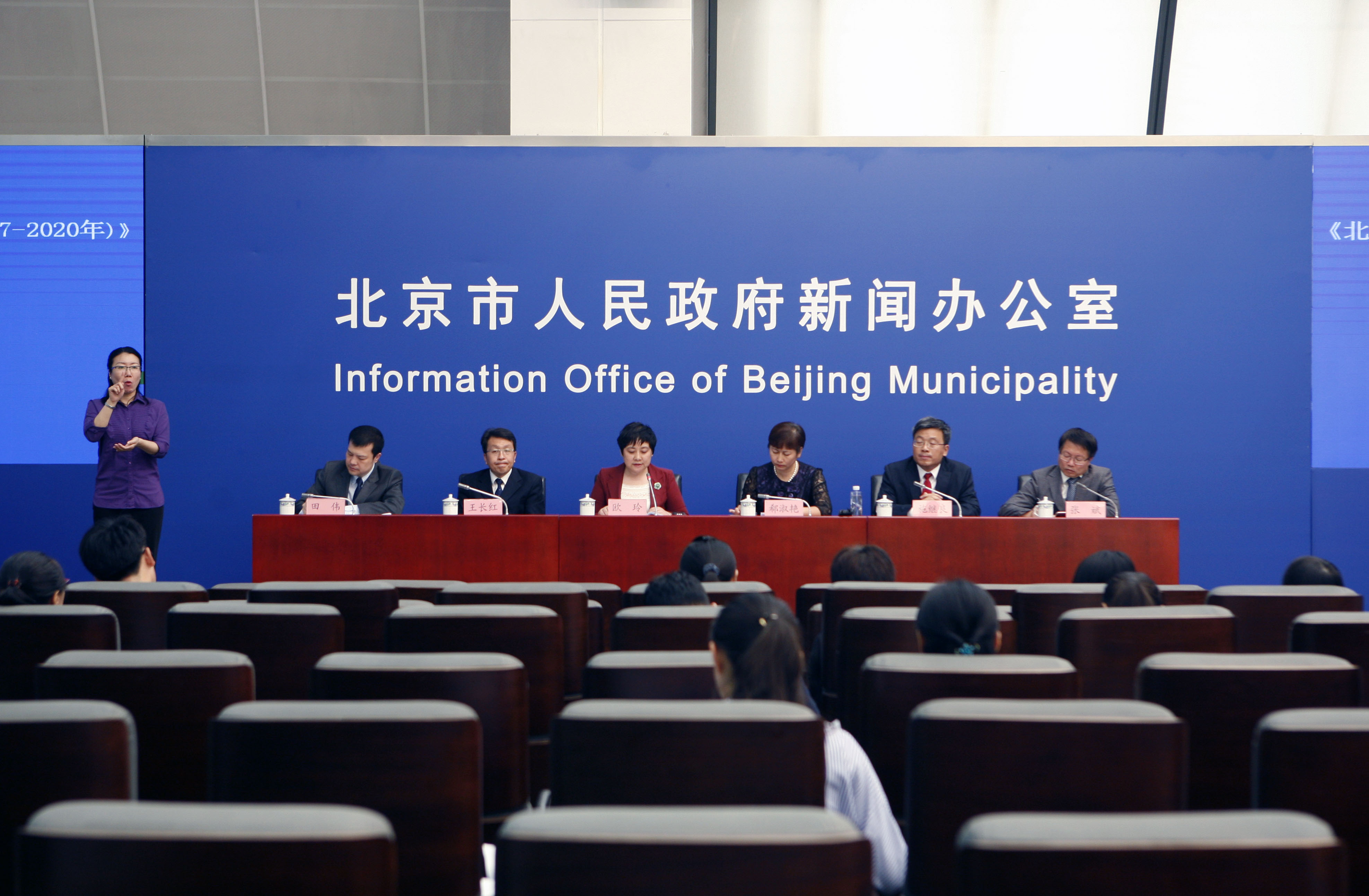 北京市殘疾人聯(lián)合會副理事長歐玲女士,北京市殘疾人聯(lián)合會研究室主任王長紅先生,北京市衛(wèi)生和計劃生育委員會老年與婦幼健康服務(wù)處處長郗淑艷女士,北京市殘疾人聯(lián)合會康復(fù)部主任施繼良先生,北京市衛(wèi)生和計劃生育委員會疾病預(yù)防控制處張斌處長,首先請北京市殘聯(lián)副理事長歐玲女士介紹《北京市殘疾預(yù)防行動計劃(2017-2020年)》政策出臺的背景和內(nèi)容。