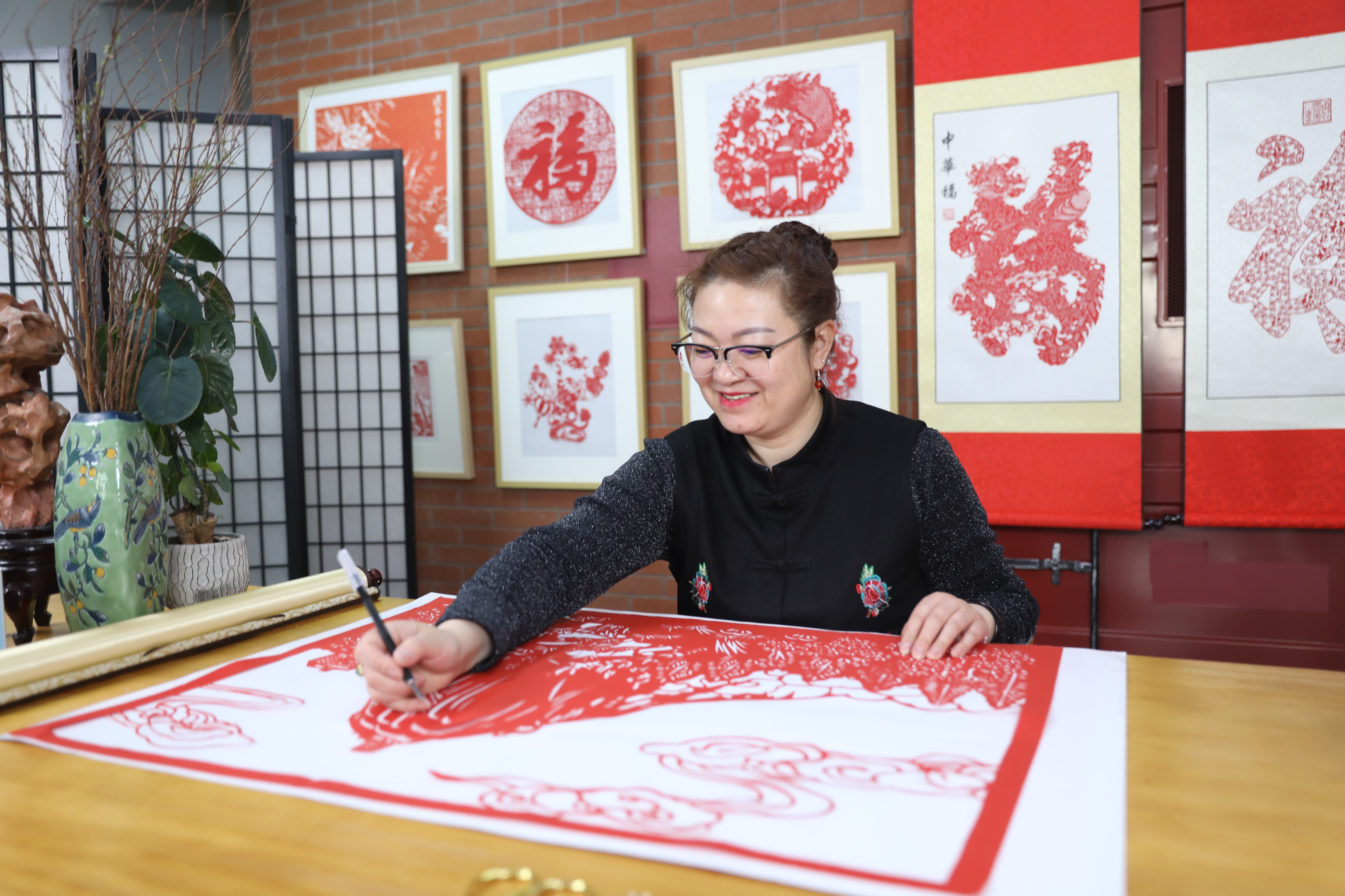 40多年的勤“剪”不輟,加上在富有活力的持續(xù)實踐中形成了自己“紙下運剪”“隨手入形”的技藝特色,讓宿珈滌的作品越來越受青睞。