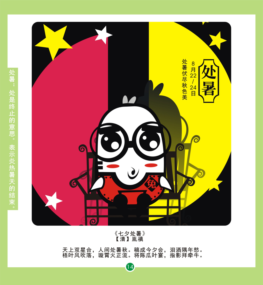 處暑是二十四節(jié)氣中的第十四個節(jié)氣,也是從立秋開始的第二個節(jié)氣。“處,止也,暑氣至此而止”。此時溽暑行將結(jié)束,伏天已過或接近尾聲,炎熱日消,暑氣漸退。(作者:賢二水墨)