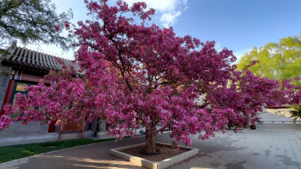 宋慶齡故居古樹名木眾多,這是東廣場的海棠“絢麗”盛開時(shí)的美景。