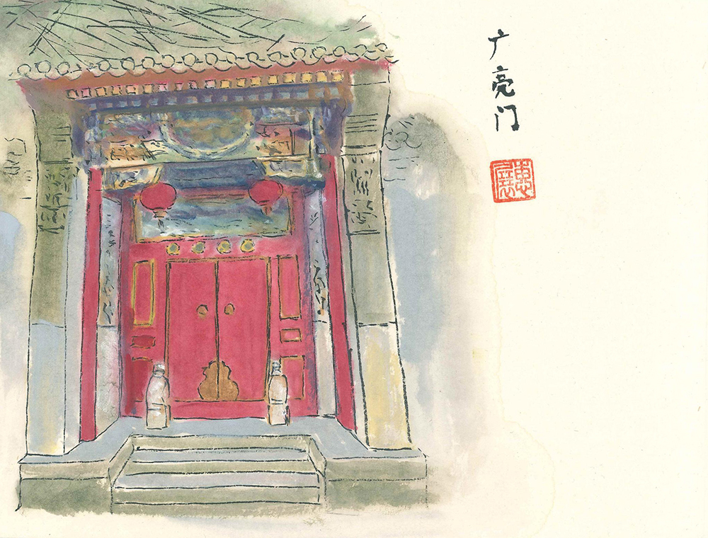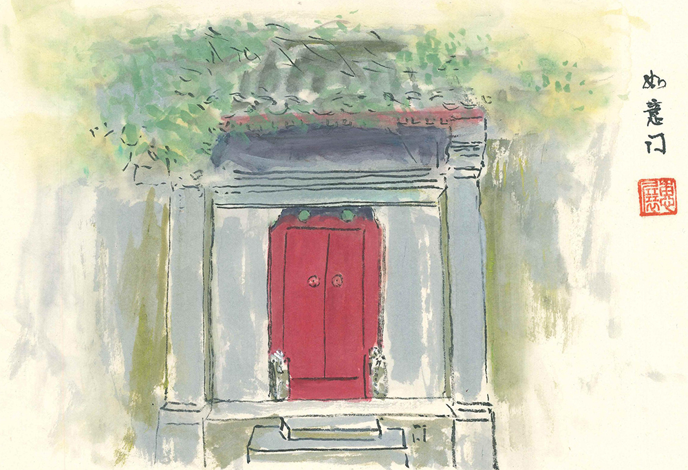 在北京胡同里最常見的門就是“如意門”了。這種門是在前檐柱間砌墻,在墻上居中部留門洞。門洞內(nèi)安裝門框、門檻、門扇以及抱鼓石等構(gòu)件。(作者:陳惠展)