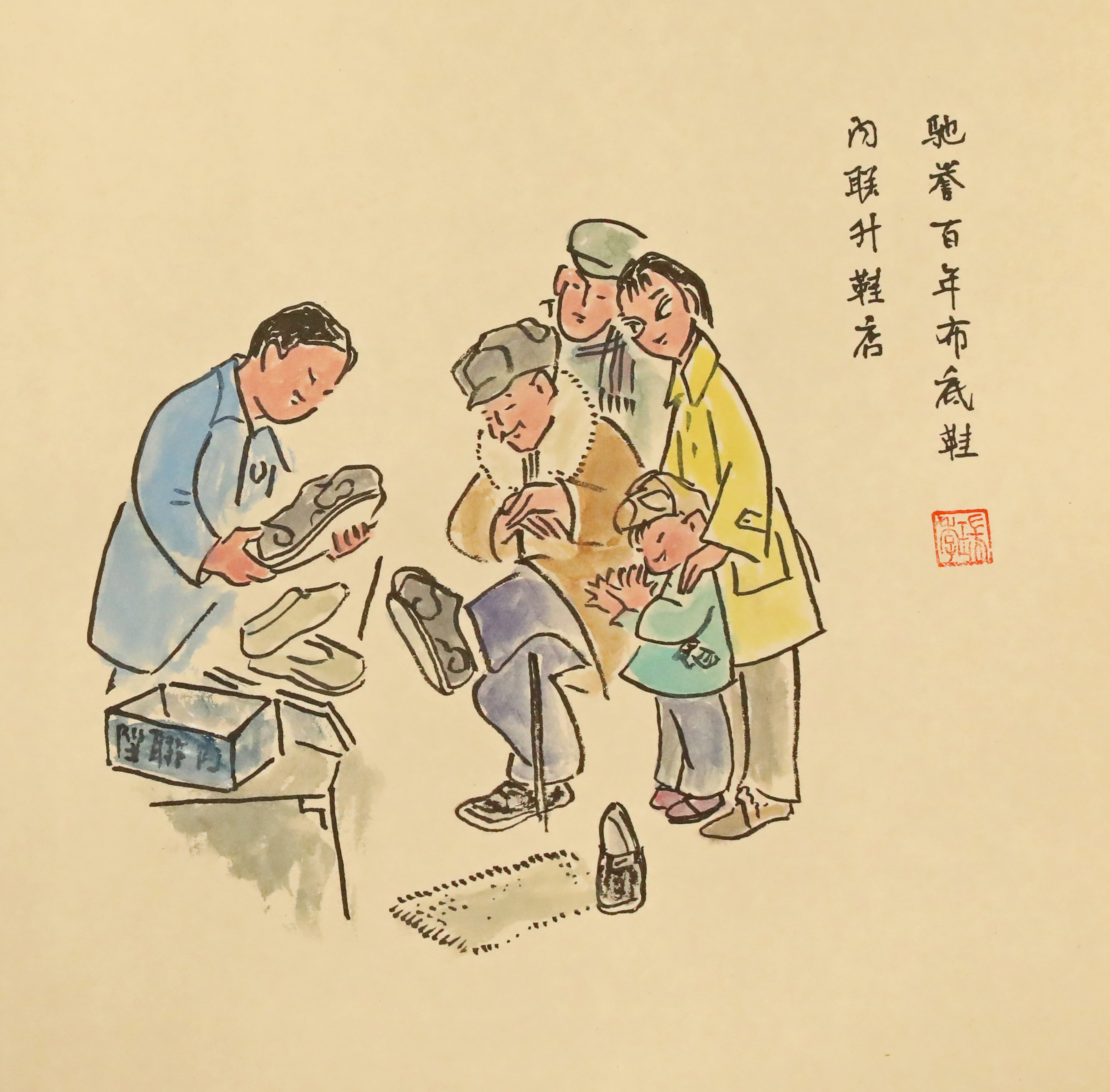 內(nèi)聯(lián)升鞋店。老話兒說:“爺不爺先看鞋?!?作者:李濱聲、陳惠展)