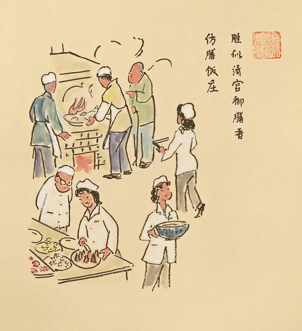 仿膳飯莊位于北海公園,1925年創(chuàng)辦,是京城有名的宮廷菜館,北京市旅游局定點涉外餐館,特級飯莊,人們一般稱之為仿膳兒。仿膳飯莊前身是“仿膳茶莊”,主要經(jīng)營宮廷糕點小吃,以肉末燒餅、小窩頭、豌豆黃最為有名。1956年改為飯莊,經(jīng)營宮廷菜肴,以“滿漢全席”馳名中外。(作者:李濱聲、陳惠展)
