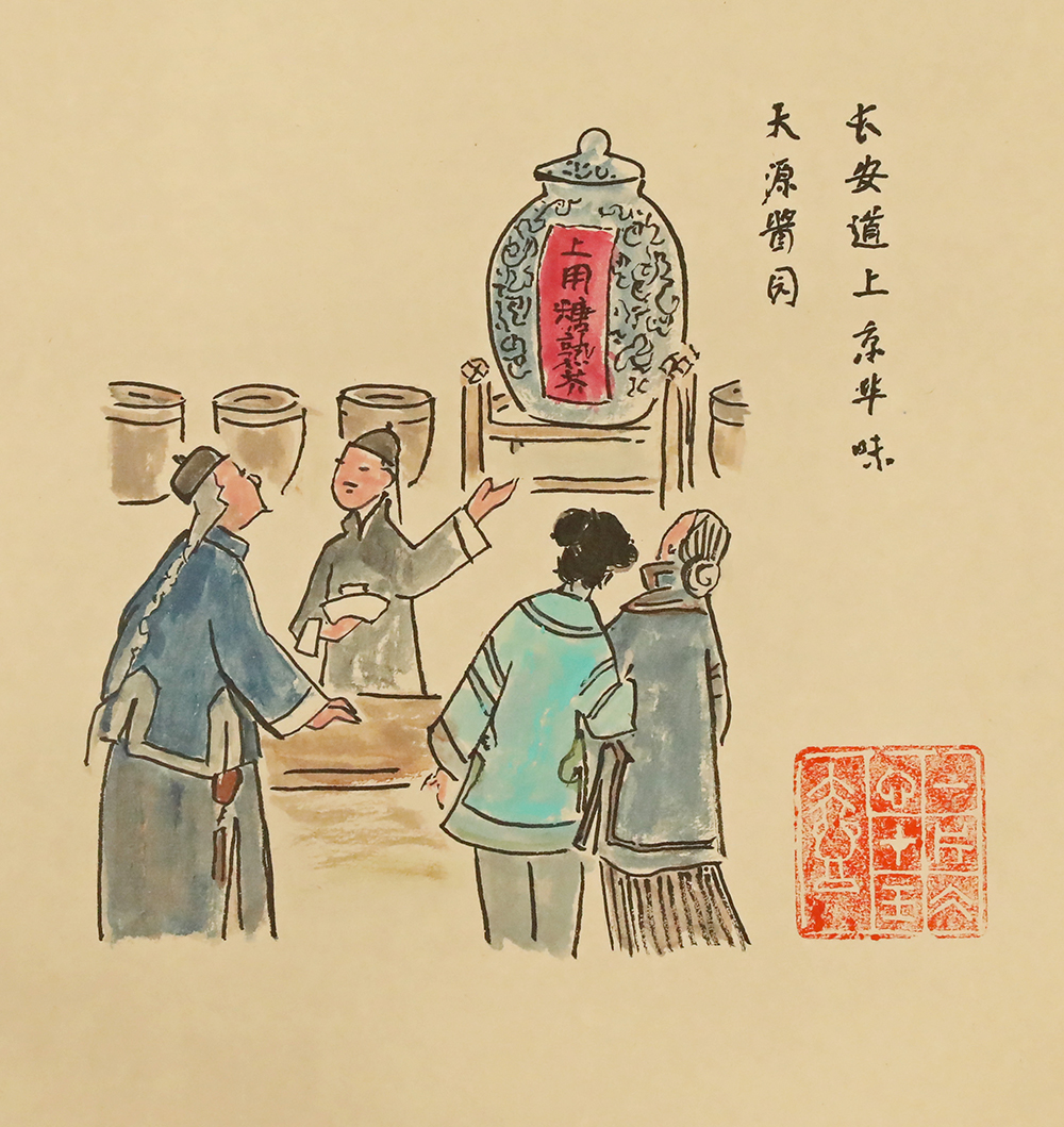 “天源醬園”開業(yè)于清同治八年(1869年)至今已有130多年的經(jīng)營歷史,是由當時京城“四大當鋪“之一的的劉湛軒用二百兩白銀買下一家即將倒閉的油鹽店而開辦的。店主當時的目的是為了接觸上層社會,所以請醬菜師傅引進清宮御膳房的技術(shù),前店后廠,自產(chǎn)自銷,尤其以生產(chǎn)甜面醬和各種甜醬菜聞名。(作者:李濱聲、陳惠展)