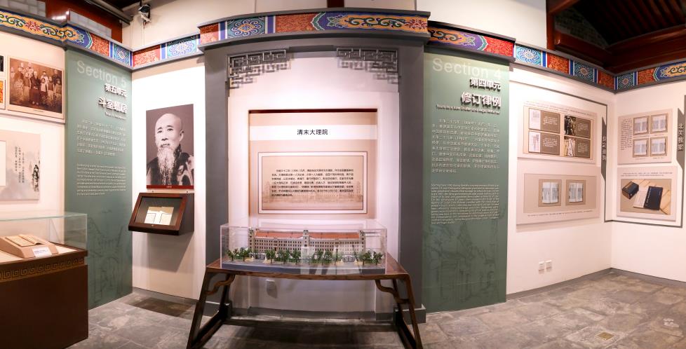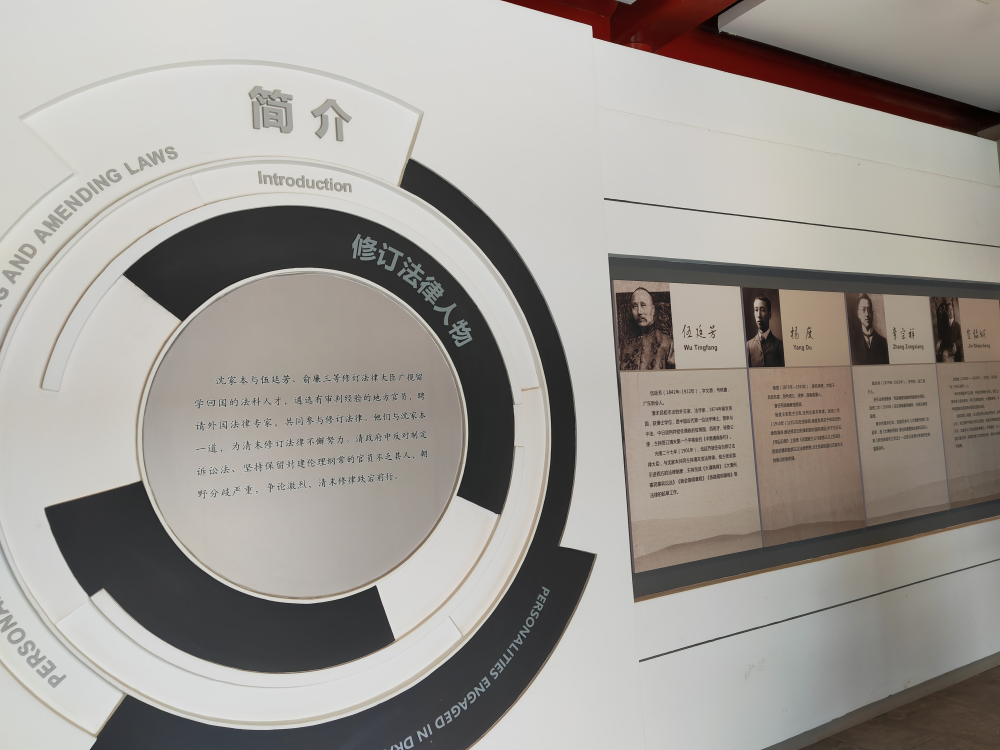 二廳介紹了清末修律及其對中國法治現(xiàn)代化進(jìn)程的影響。展館分別從修律背景、修律準(zhǔn)備、翻譯西法、研究整理傳統(tǒng)法律、改造舊律和制定新律等方面對清末修律的內(nèi)容進(jìn)行展示。