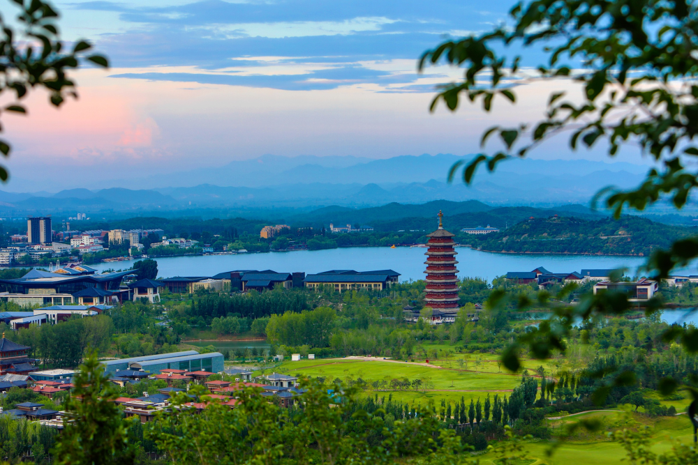 雁棲塔巍峨矗立雁棲湖核心島,與湖光山色交相輝映,成為島上璀璨明珠,展現(xiàn)自然與人文的和諧之美。