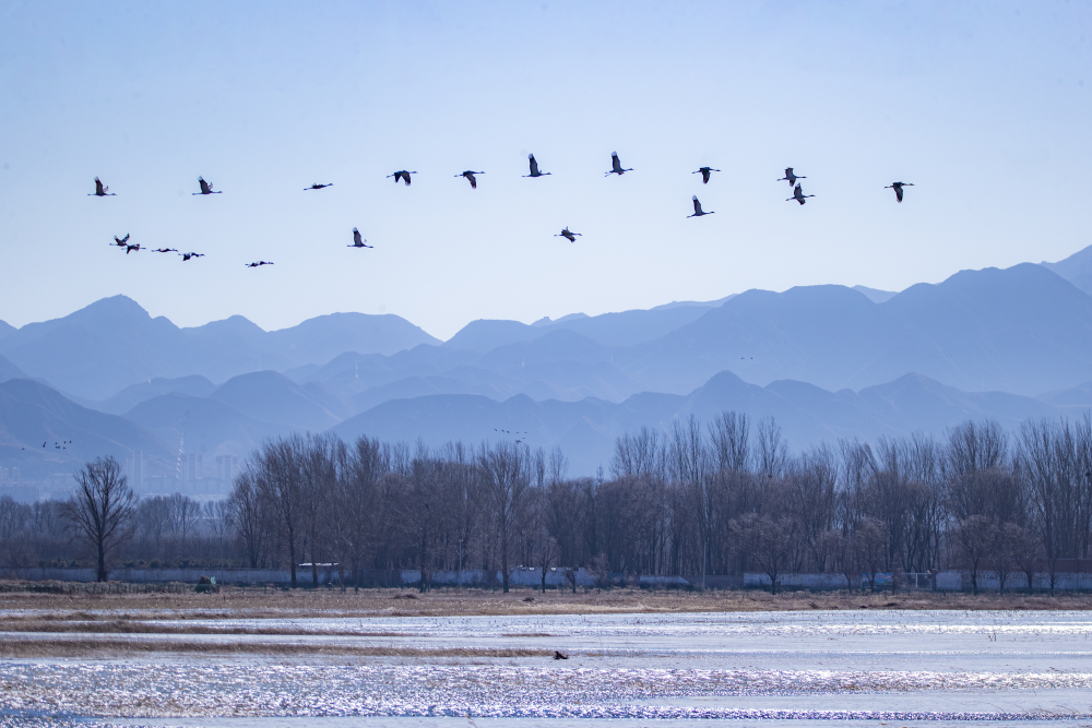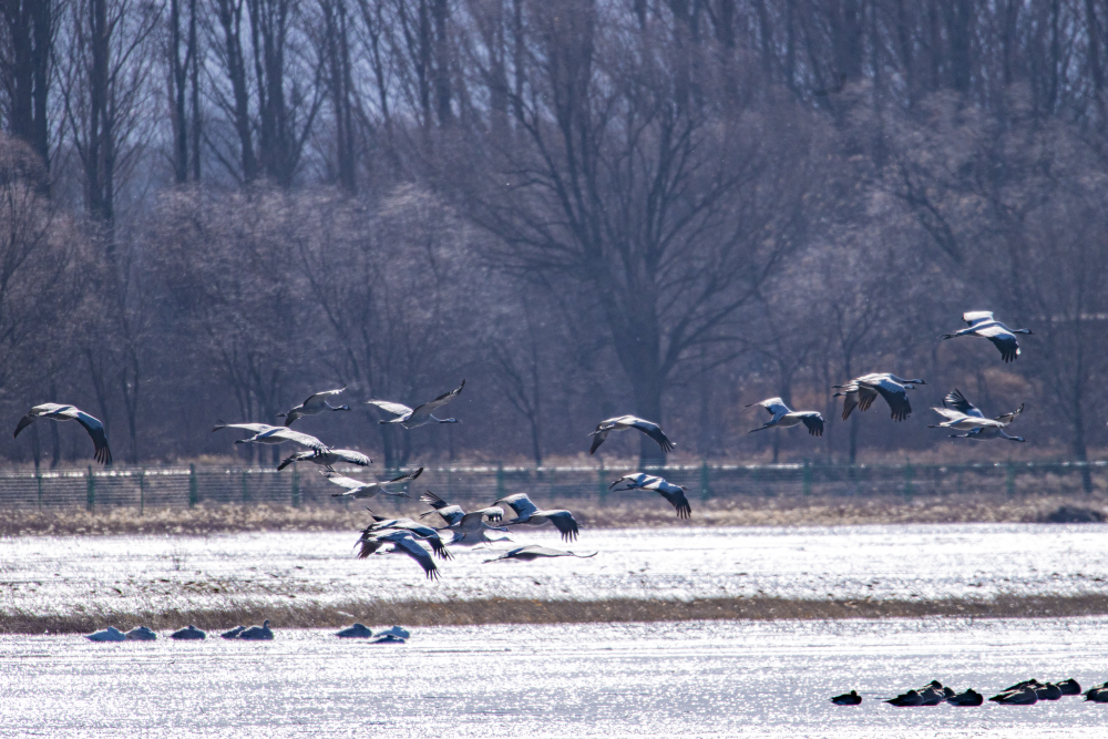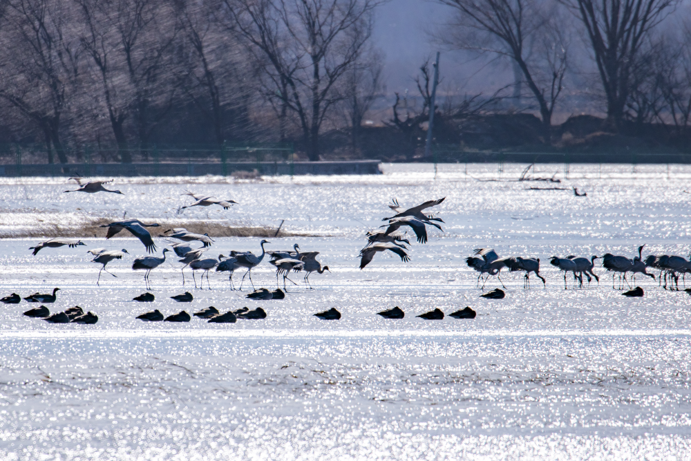 日前,野鴨湖畔迎來近千只遷徙途中的豆雁,它們身披灰褐色羽毛,宛如湖面上躍動(dòng)的音符,或低首覓食,或振翅嬉戲,在尚未完全冰封的水面上繪出一幅生動(dòng)的冬日生態(tài)畫卷。(李曉鵬/攝)