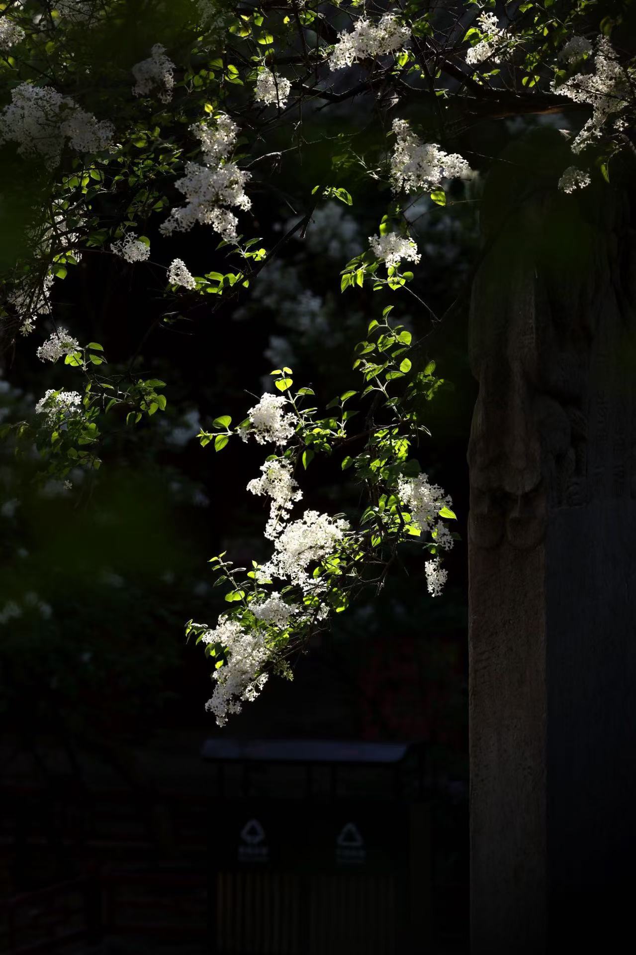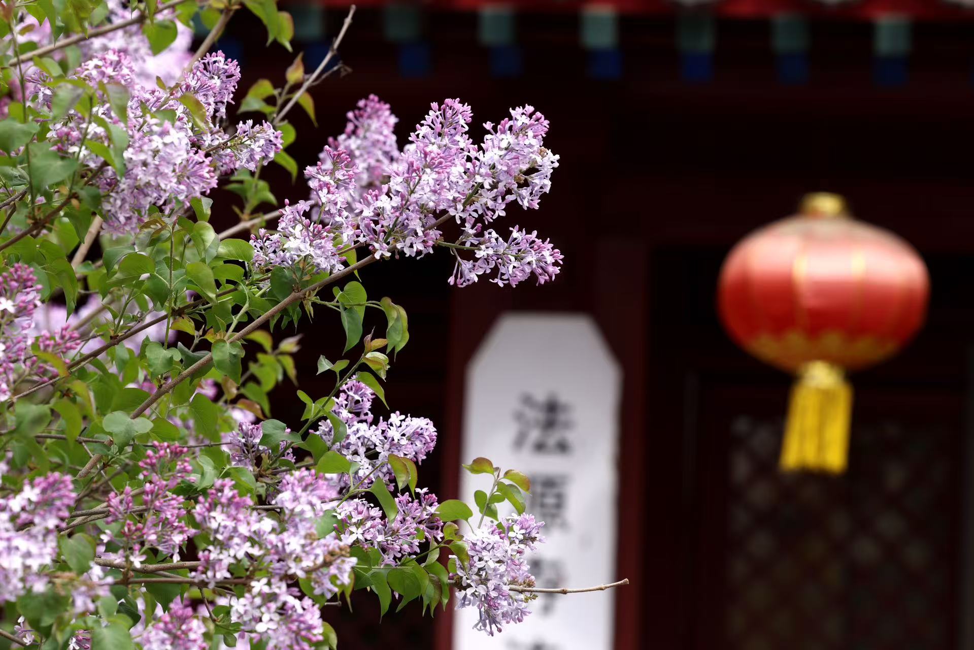 而法源寺的千年古剎里,紫丁香如云似霞,香爐前垂落的紫白花枝,將禪意與春色糅合成獨特的東方美學意境。