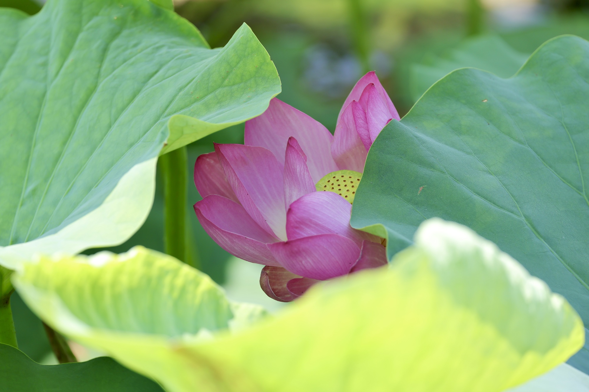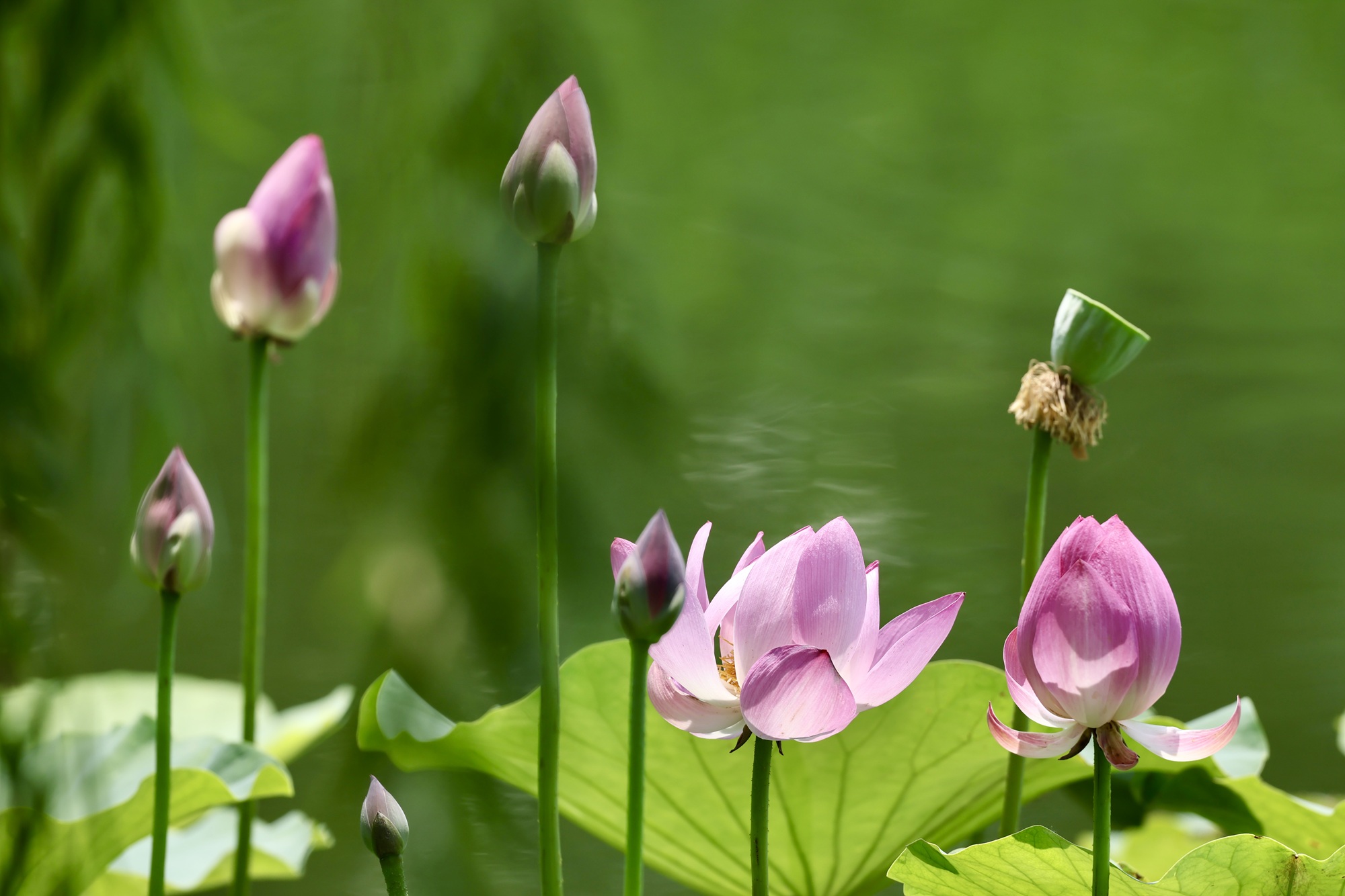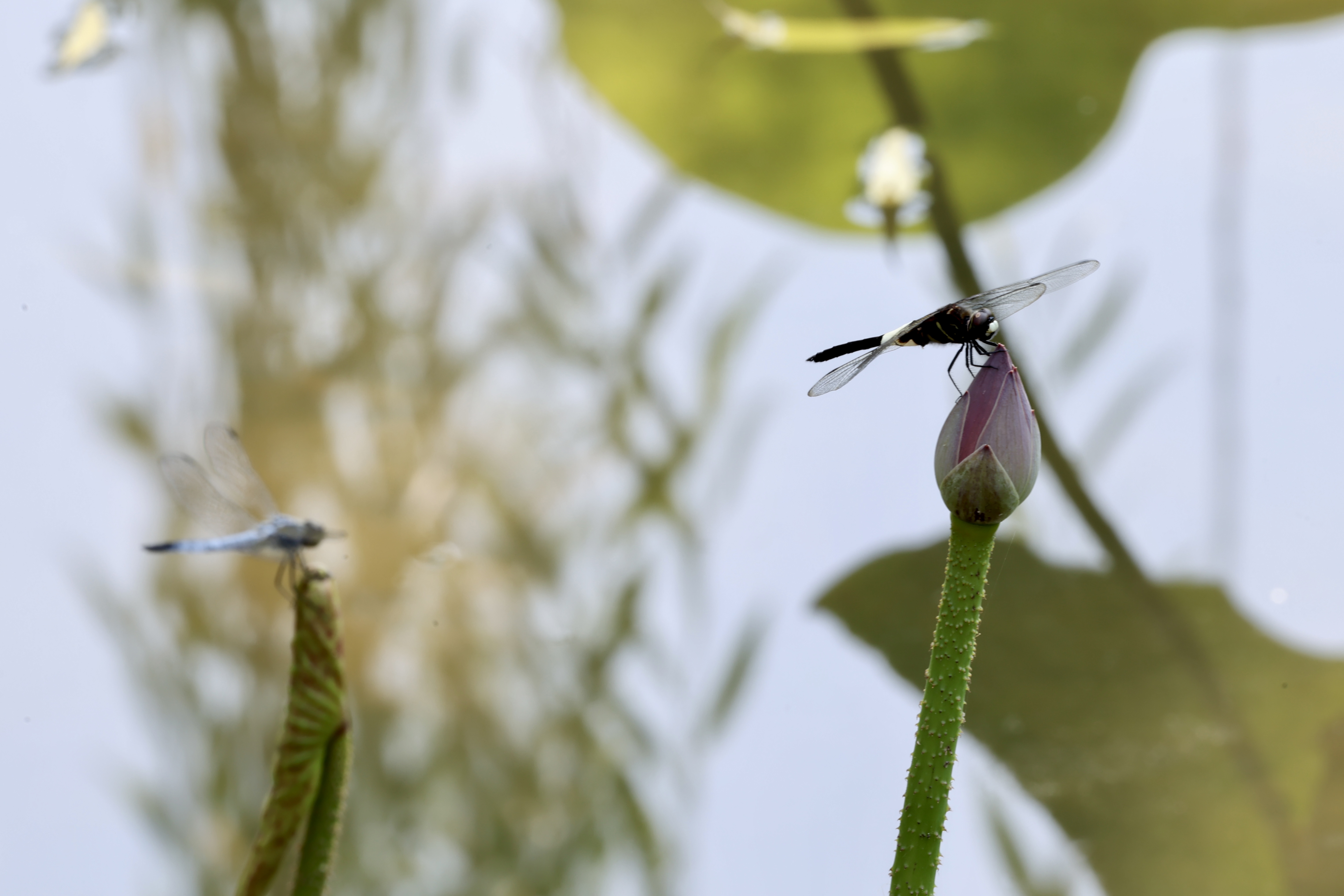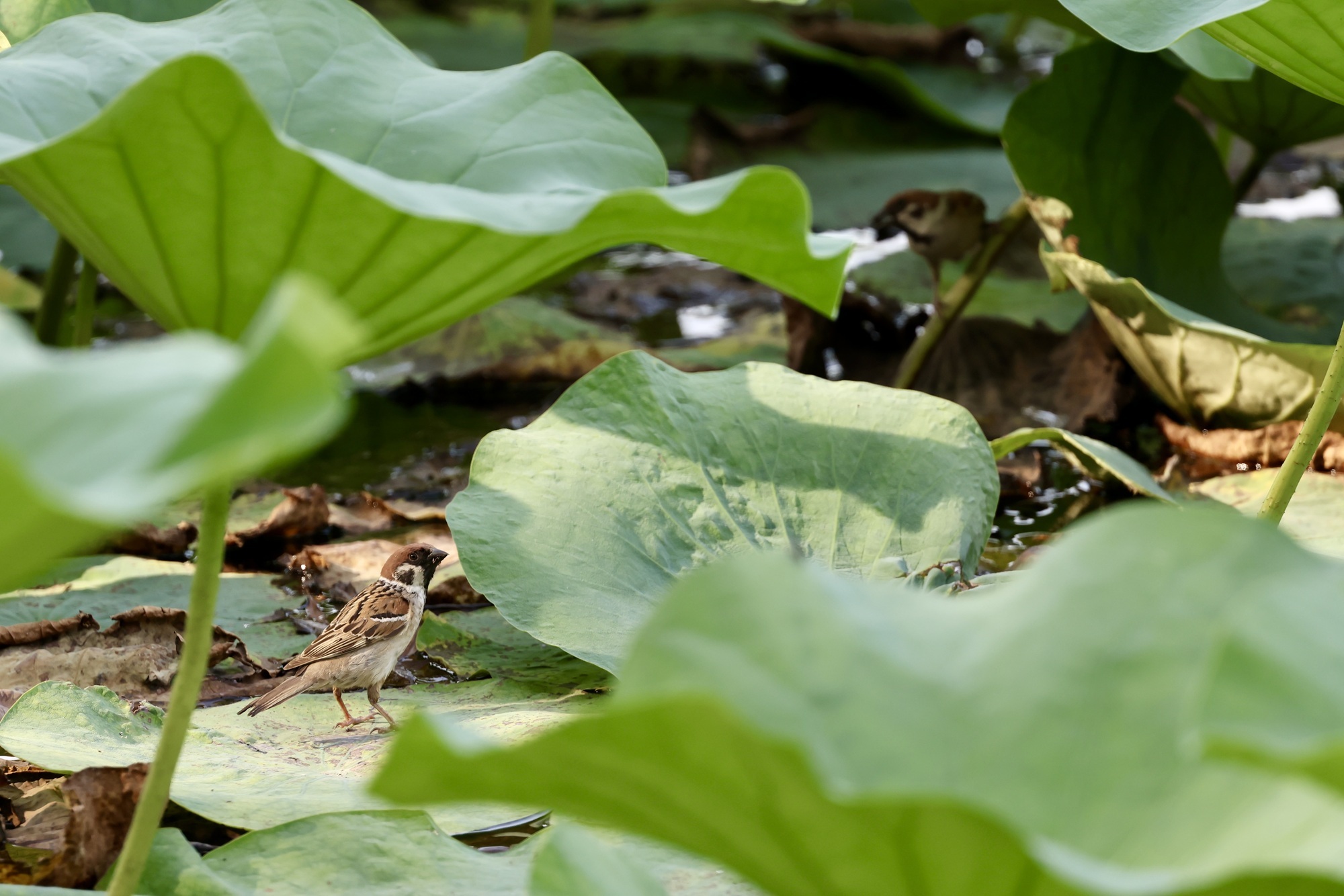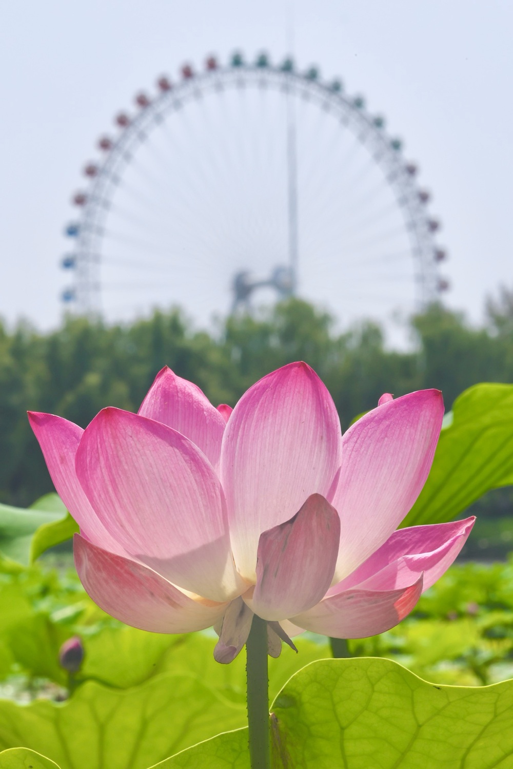 盛夏驕陽下,北京城的清荷以最蓬勃的姿態(tài)綻放。粉白相間的荷花或含羞半掩,或傲然盛放,碧色荷葉如傘如蓋,在微風(fēng)中翻涌成翡翠浪濤。蜻蜓點(diǎn)水掠過花尖,薄翼折射出粼粼波光;鴨子撥開浮萍悠然游弋,攪碎一池云影;麻雀掠過水面,尾羽掃落幾滴晨露,驚起漣漪串串。