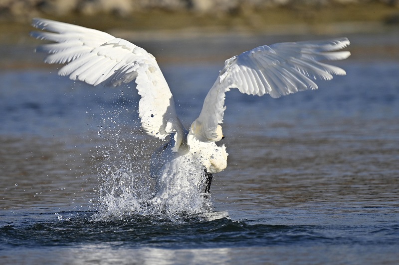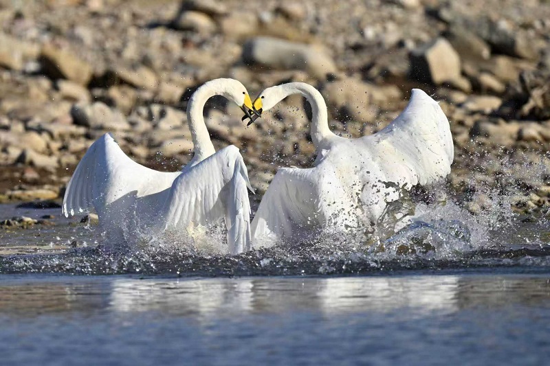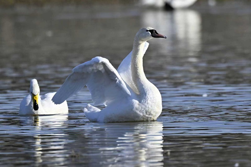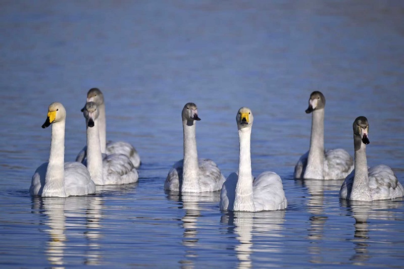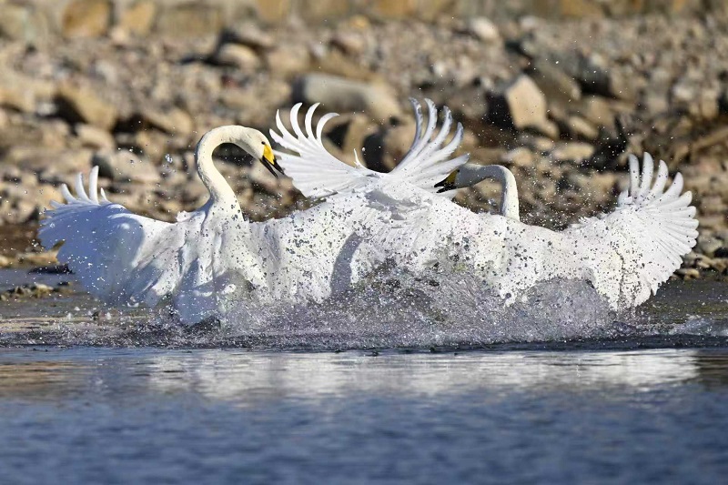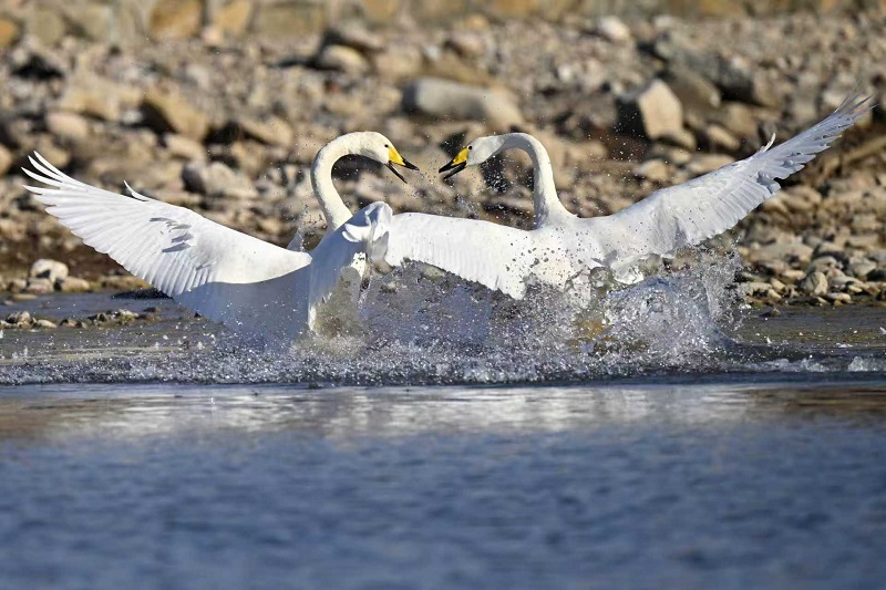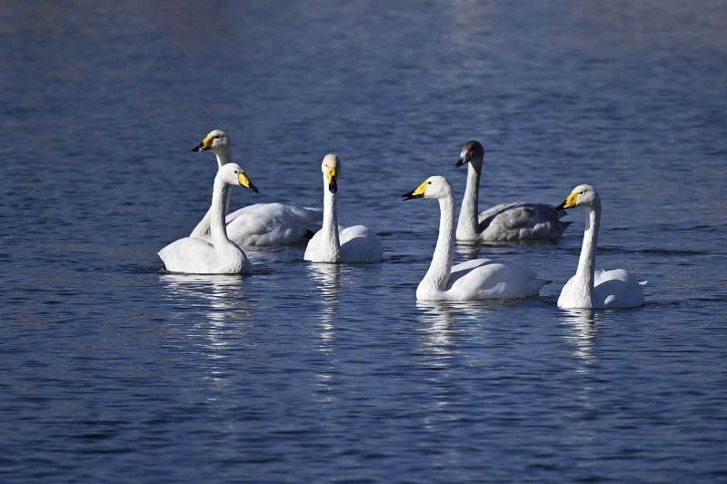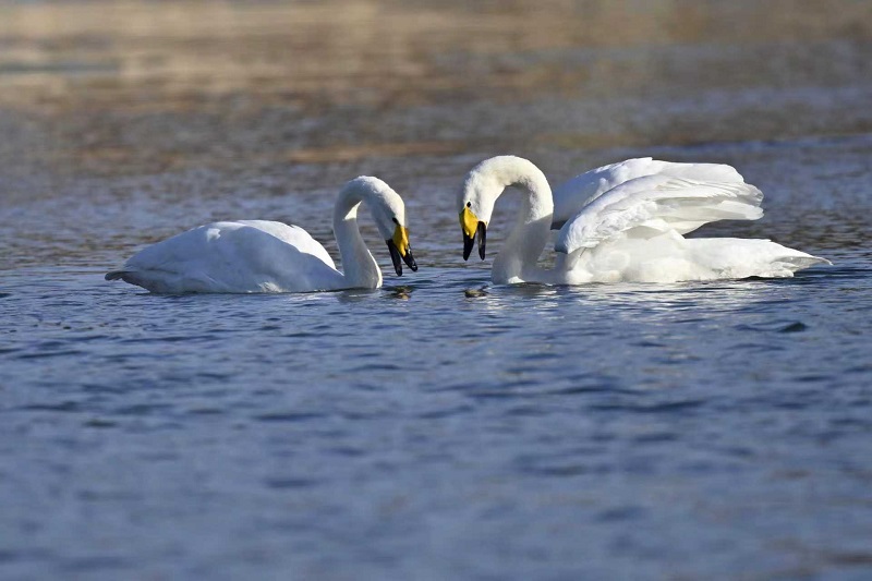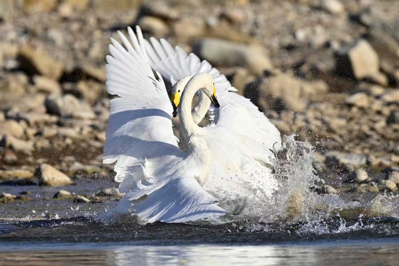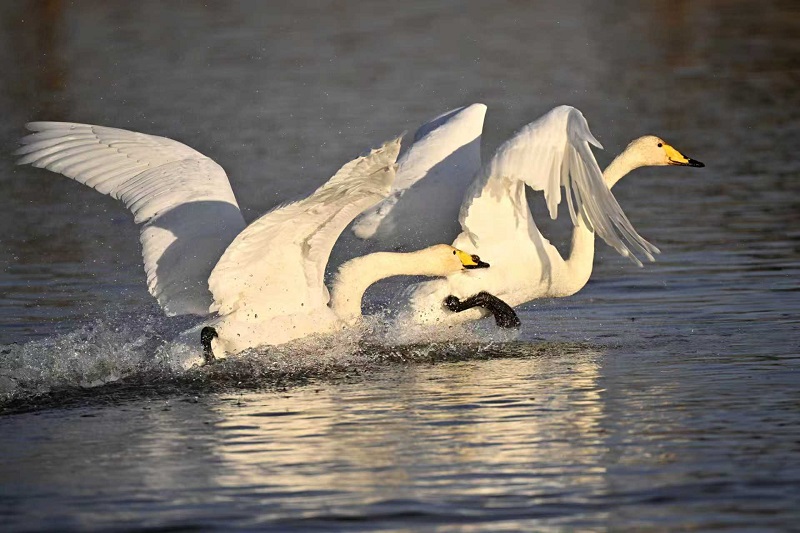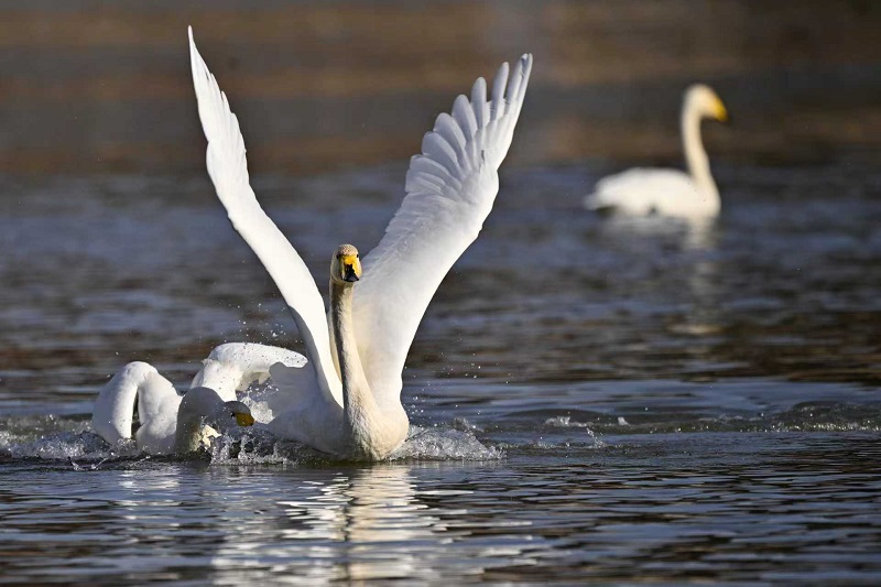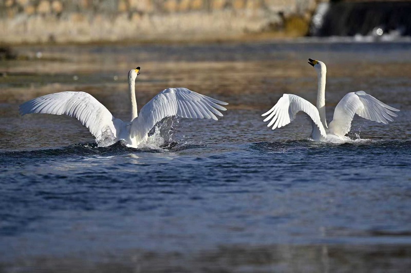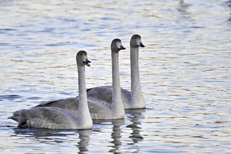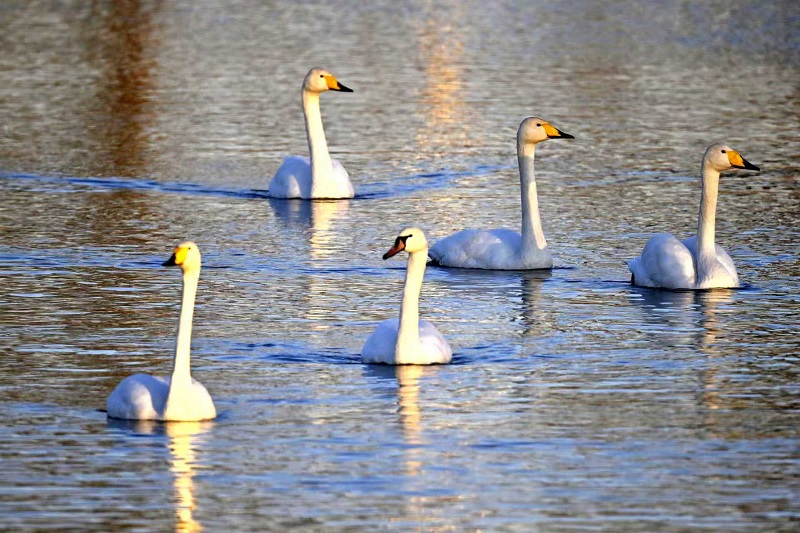 這里是密云清水河太師屯蘆各莊流域,11月19日清晨,一批批天鵝陸續(xù)從水庫灘途飛到這里。截至19日,這里已經(jīng)聚集了62只天鵝。更讓人驚喜的是,還記錄到了白天鵝、小天鵝、疣鼻天鵝混群于一個池塘越冬的畫面。(攝影:李愛宏)
