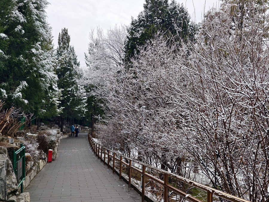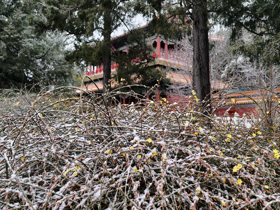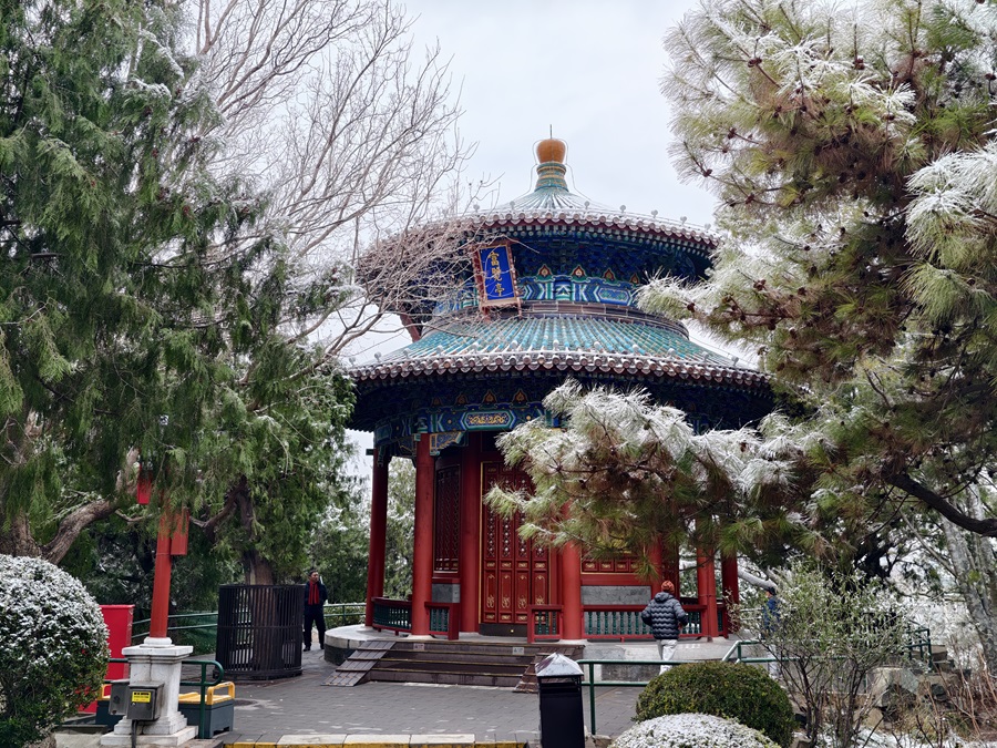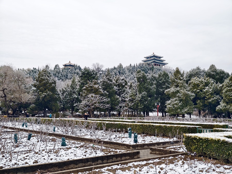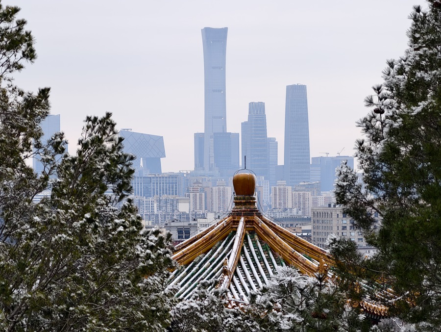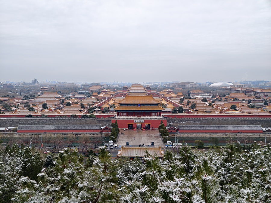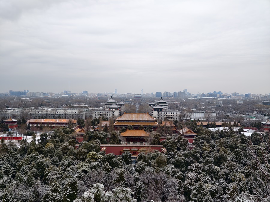 馬年的第一場雪悄然而至。銀絮紛揚中,景山萬春亭化身最佳觀景臺。南望紫禁城紅墻覆雪,東觀現(xiàn)代樓宇披上素紗,古今對話于漫天飛雪間悄然展開。