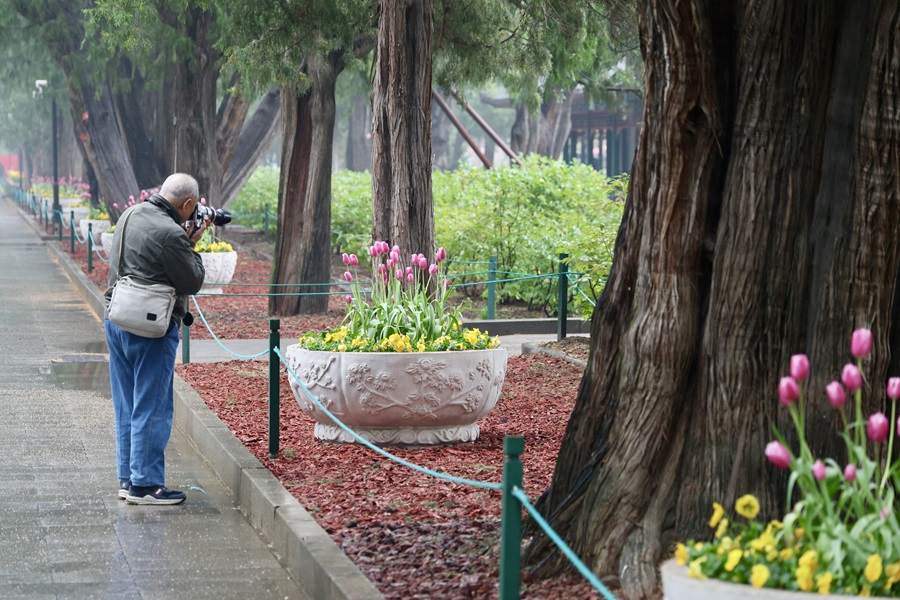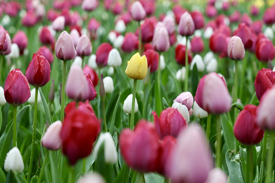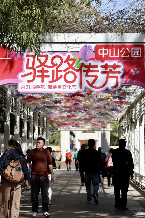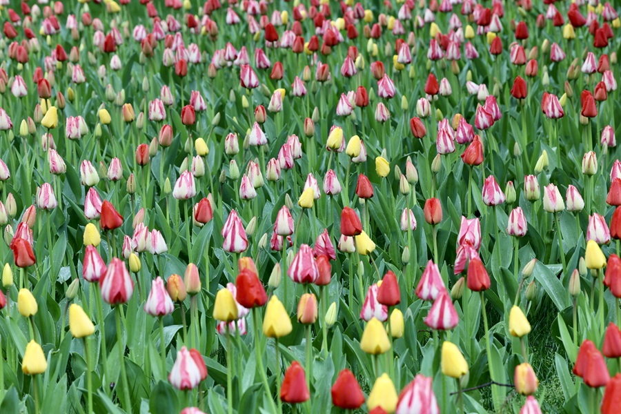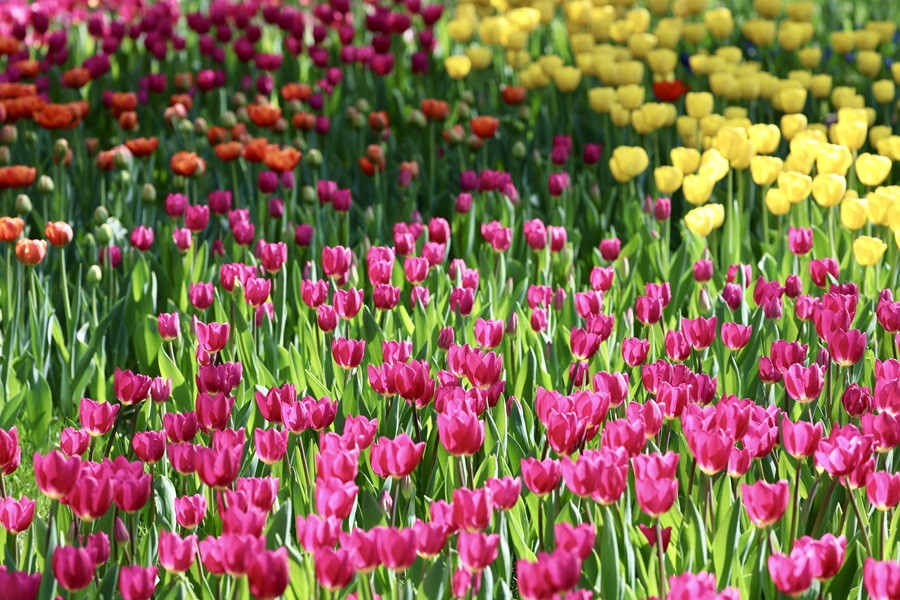 眼下,中山公園第31屆春花·郁金香文化節(jié)正火熱進(jìn)行中。園內(nèi)18萬株郁金香,與風(fēng)信子、洋水仙等球根花卉錯(cuò)落搭配,鋪展出4000平方米的絢麗花海,正緩緩綻放。