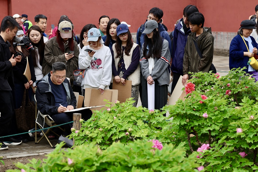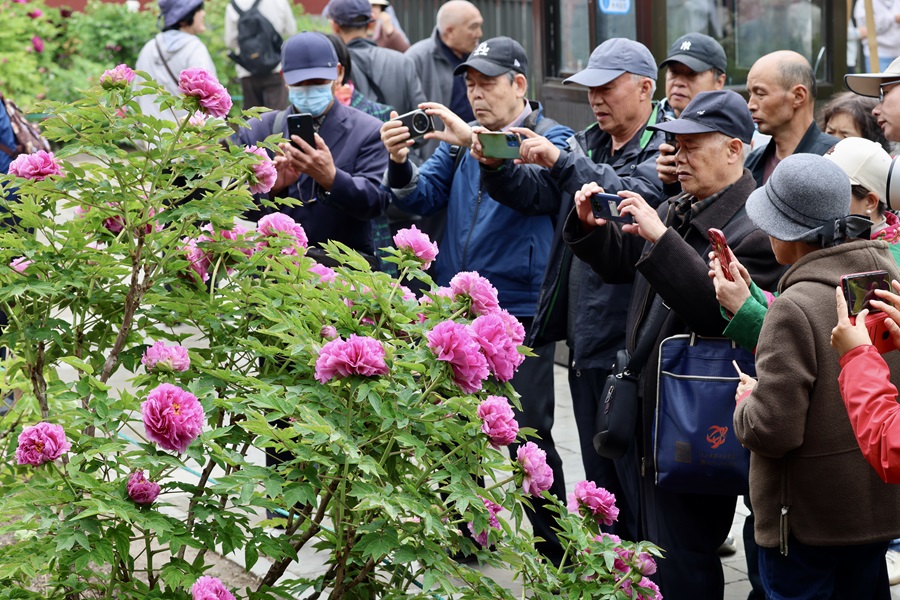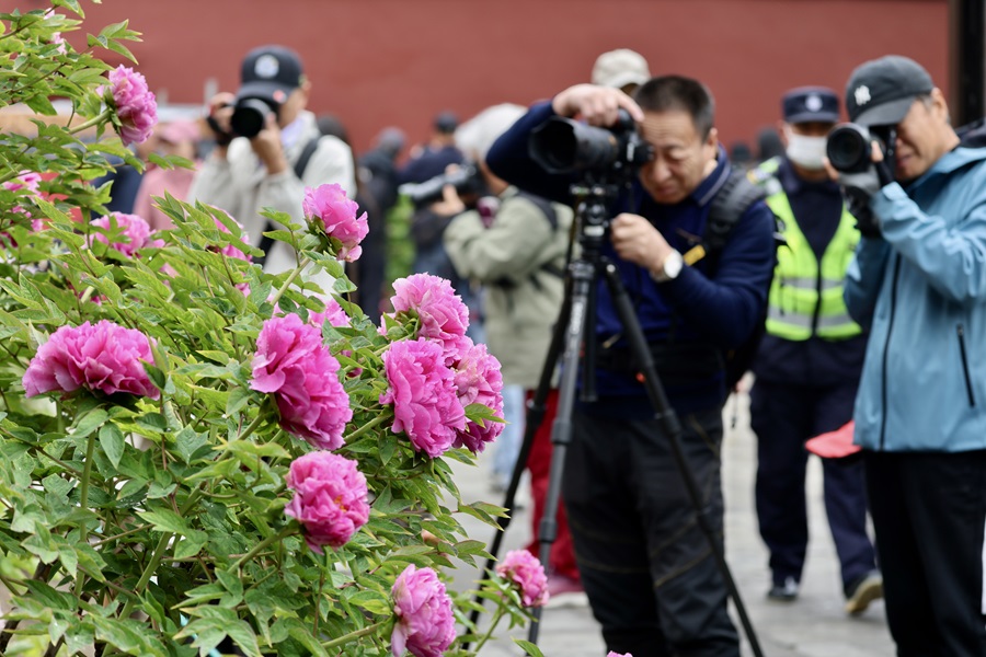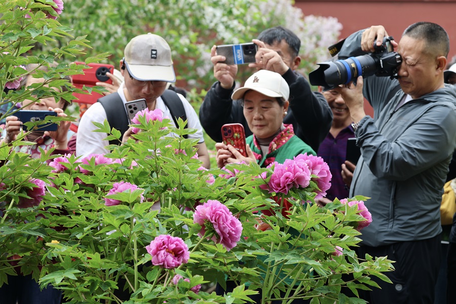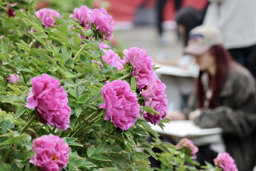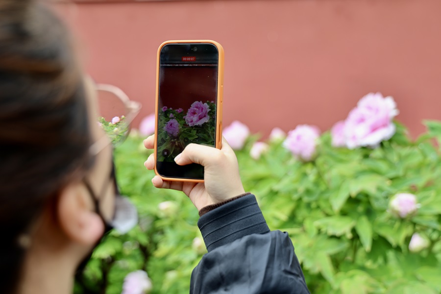 京城春意漸濃,隨著2026年景山公園第二十九屆牡丹文化節(jié)于4月11日拉開帷幕,園內(nèi)最美園路“牡丹路”也于近日迎來一年中的最佳觀賞期。當(dāng)前,各色牡丹已次第綻放,連綿花海與近處的綺望樓、高處的萬春亭等標(biāo)志性古建同框,紅墻為紙、花影為墨,勾勒出極具視覺沖擊力的春日勝景。