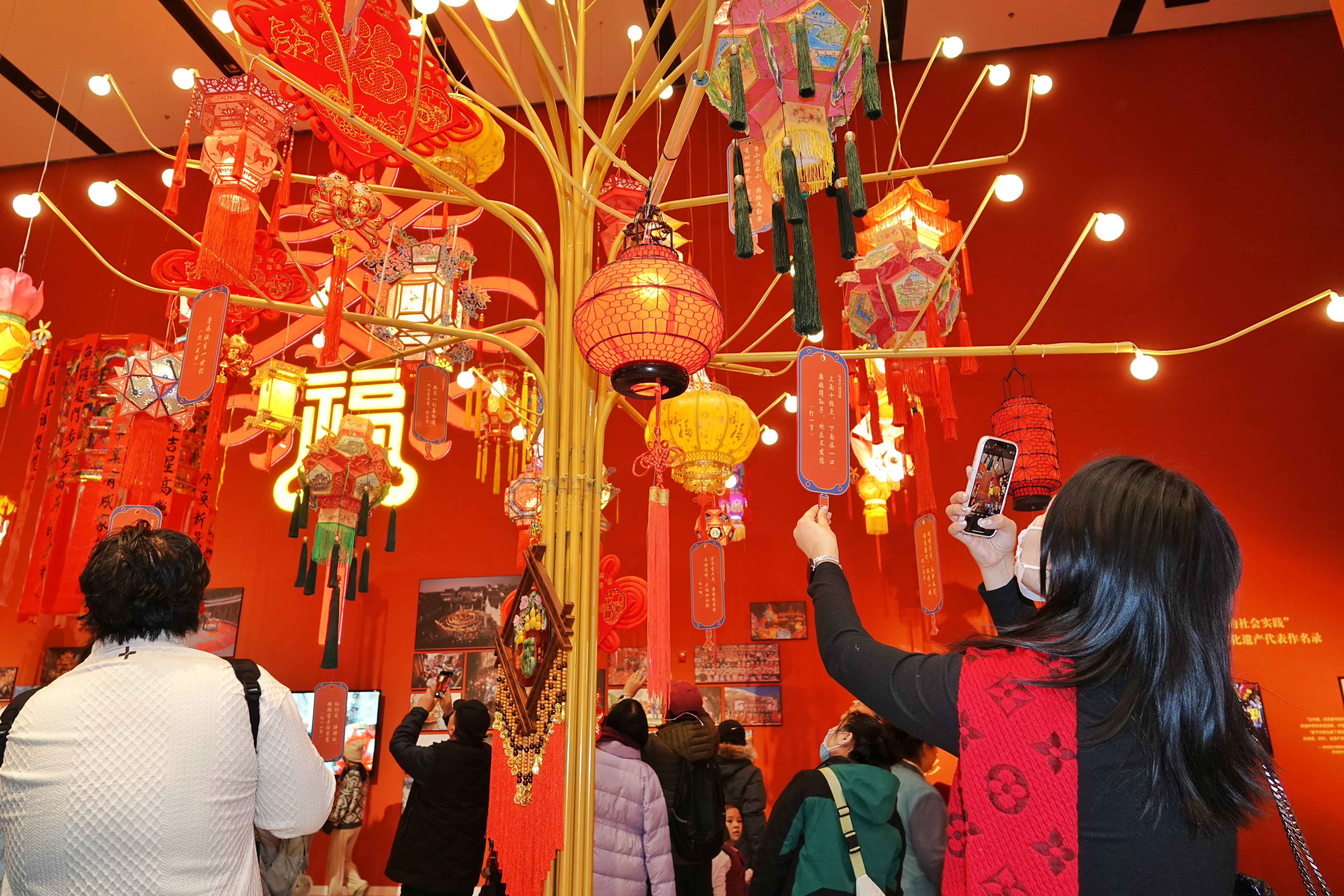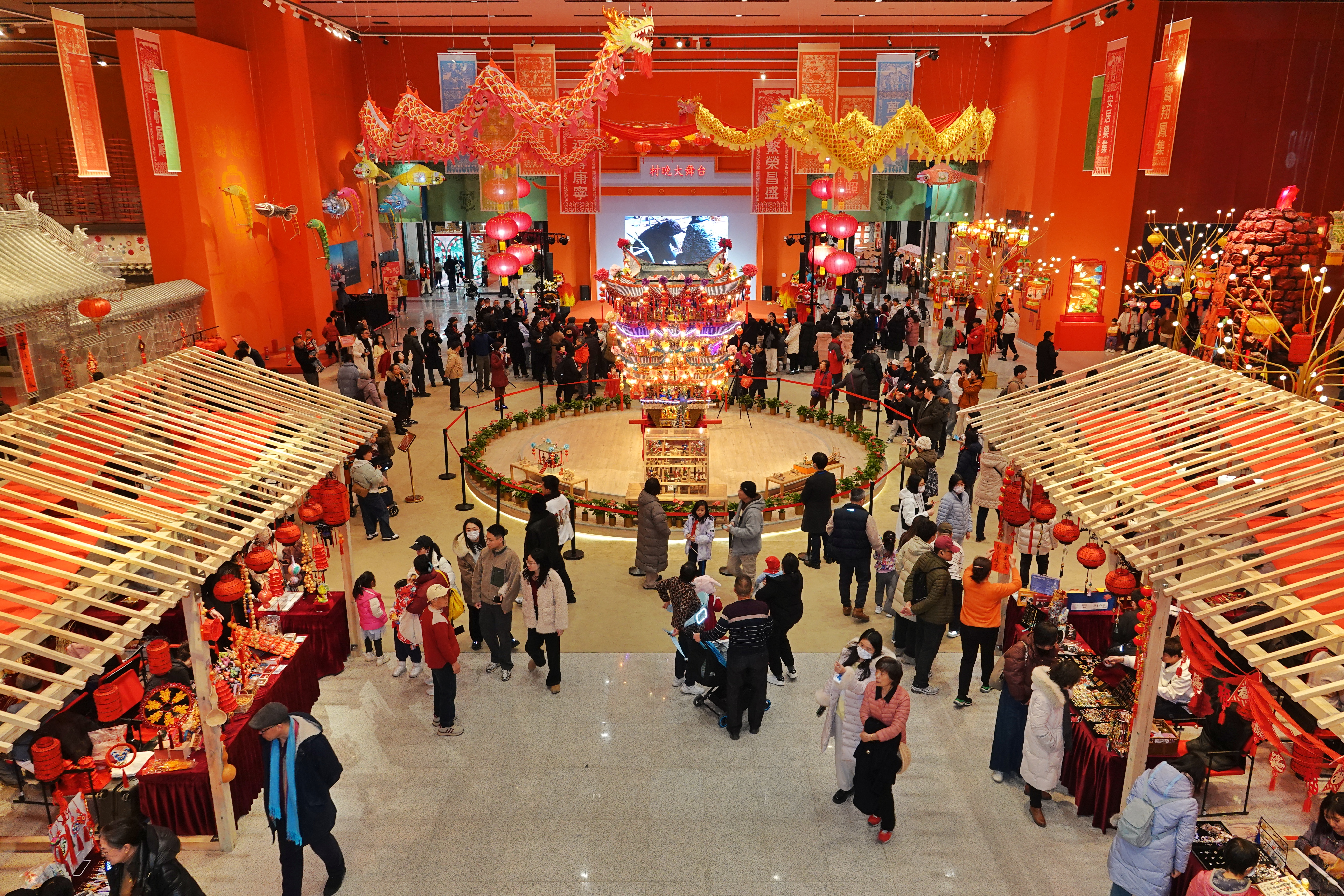 非遺館內(nèi)的非遺展現(xiàn)場吸引了眾多民眾前來參觀體驗。一踏入館內(nèi),便能看到各式各樣的非物質(zhì)文化遺產(chǎn)展示。民眾們或駐足欣賞,或親身體驗,無不沉醉于這份深厚的文化底蘊之中。