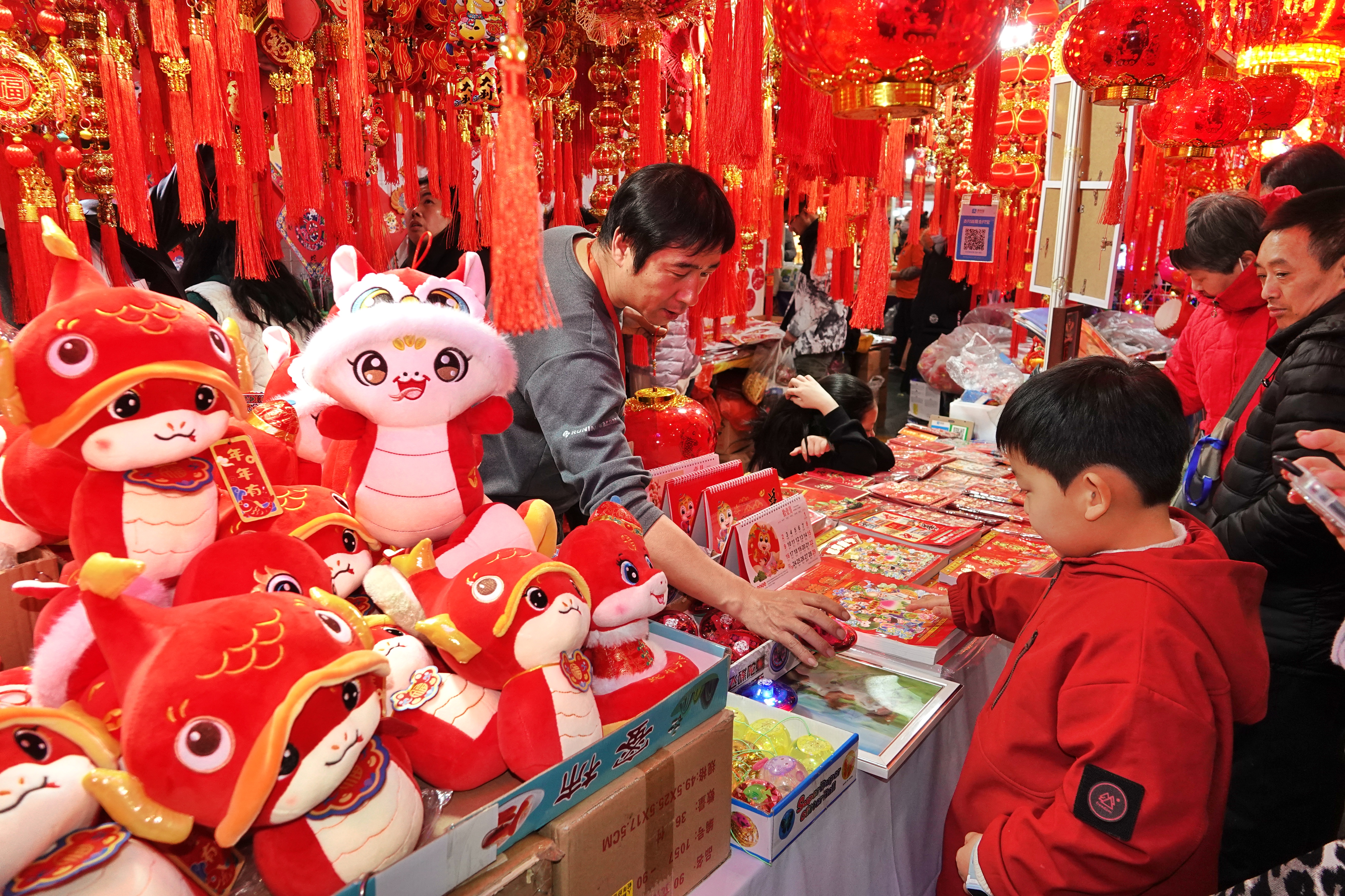 農(nóng)展館內(nèi)的年貨大集仿佛一幅活生生的年味畫卷鋪展在眼前。從展館的大門口開始,就已經(jīng)人頭攢動,熙熙攘攘的人群中充滿了歡聲笑語和對新年的期待。大集上,各式各樣的年貨攤位錯落有致,商品琳瑯滿目。