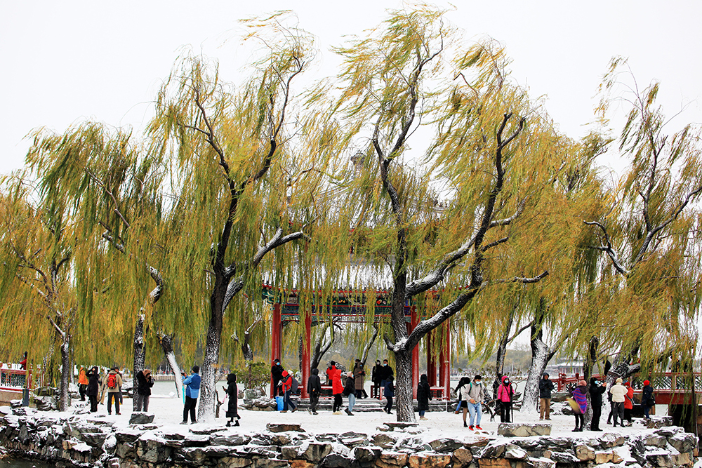 頤和園昆明湖畔雪景。