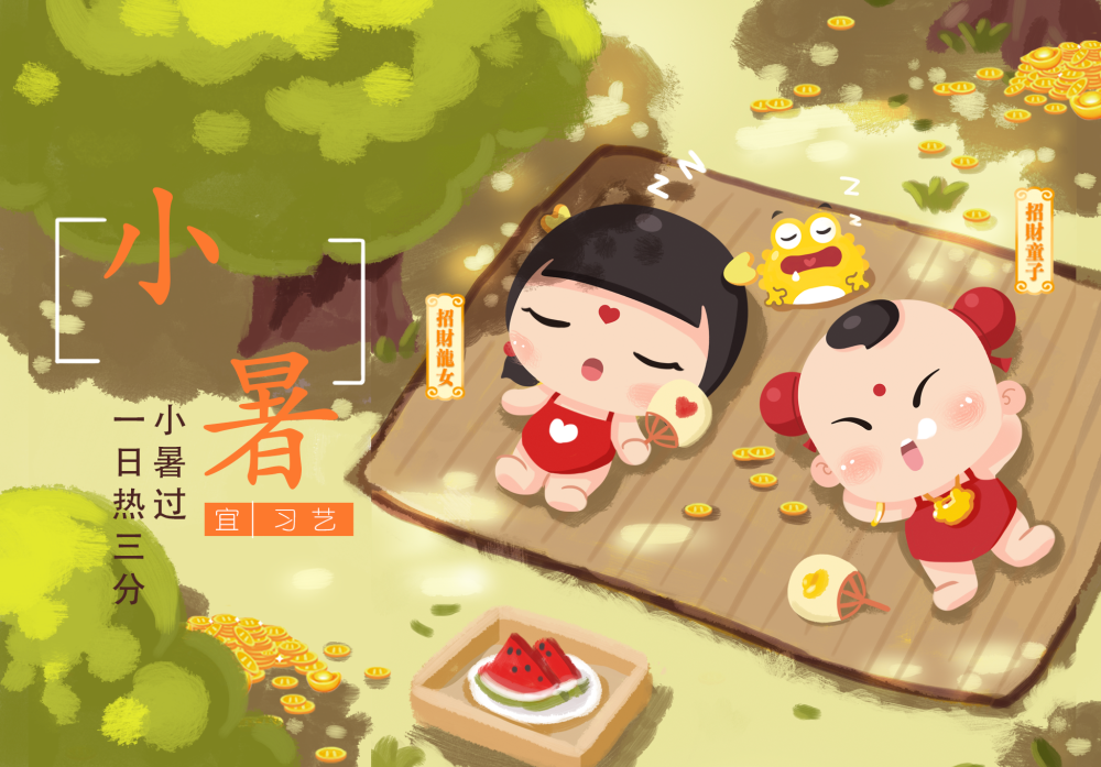 每年7月7日或8日視太陽到達(dá)黃經(jīng)105°時(shí)為小暑。是夏天第五個(gè)節(jié)氣。民間有“食新”、“吃餃子”、“吃炒面”等習(xí)俗。(作者:金航通寶)