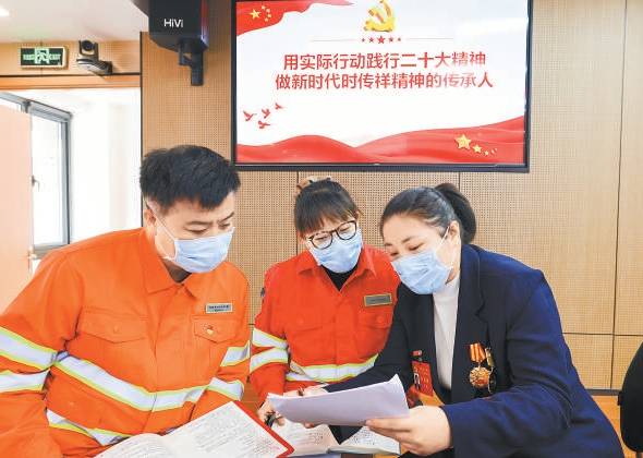 10月25日上午9點多,在東城區(qū)環(huán)衛(wèi)中心二層會議室,黨的二十大代表、東城區(qū)環(huán)衛(wèi)中心十所三八女子抽糞班班長李萌,以“用實際行動踐行黨的二十大精神,做新時代時傳祥精神的傳承人”為主題,向眾多環(huán)衛(wèi)一線職工傳達(dá)大會精神。