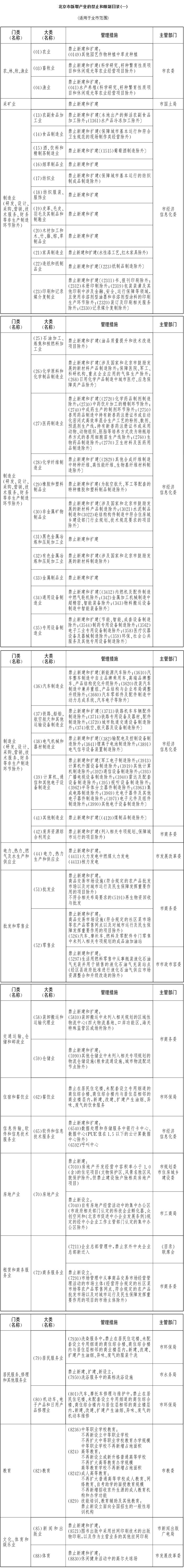 北京市新增產(chǎn)業(yè)的禁止和限制目錄(2015年版)