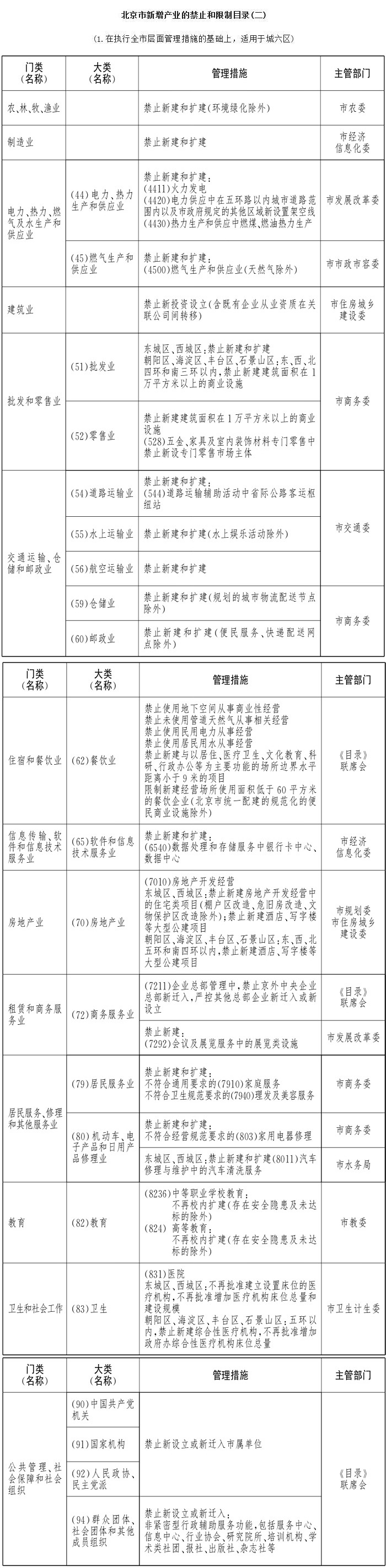 - 附件2:北京市新增產(chǎn)業(yè)的禁止和限制目錄(二)(1、在執(zhí)行全市層面管理措施的基礎上,適用于城六區(qū))