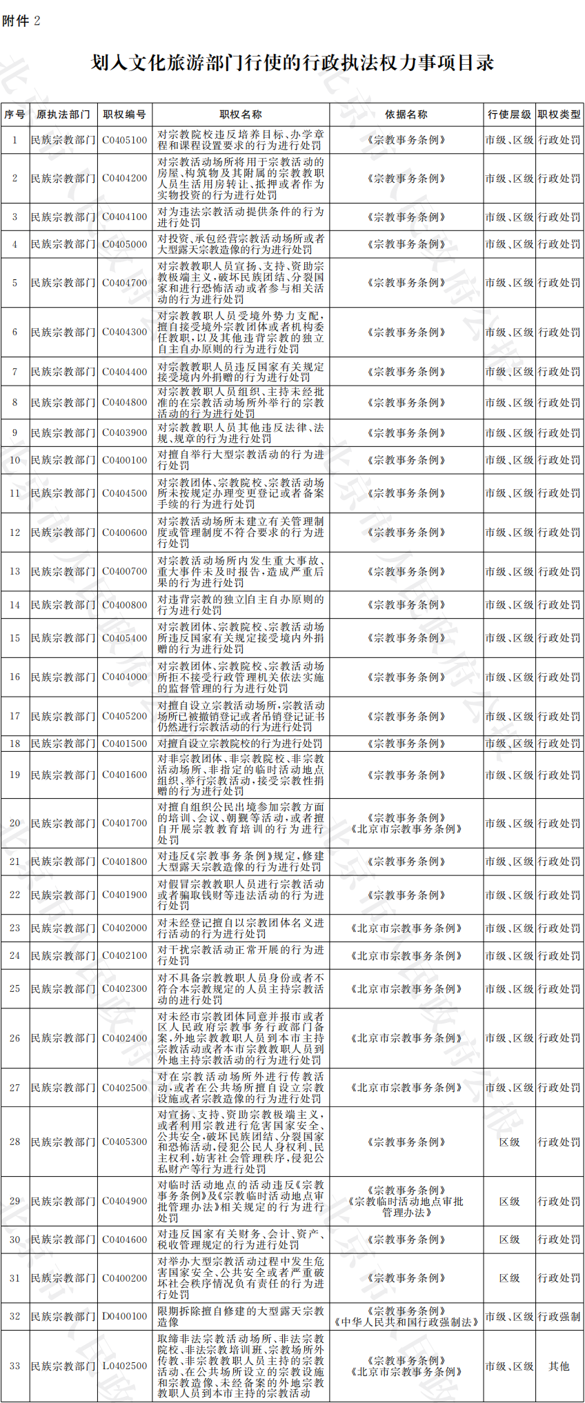 2.劃入文化旅游部門行使的行政執(zhí)法權(quán)力事項目錄
