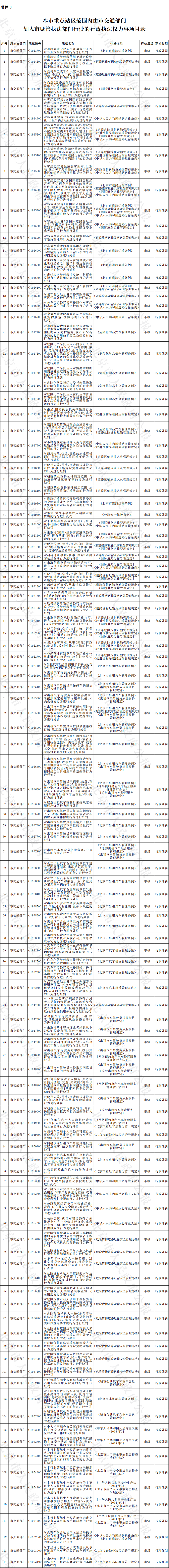 3.本市重點站區(qū)范圍內(nèi)由市交通部門劃入市城管執(zhí)法部門行使的行政執(zhí)法權(quán)力事項目錄