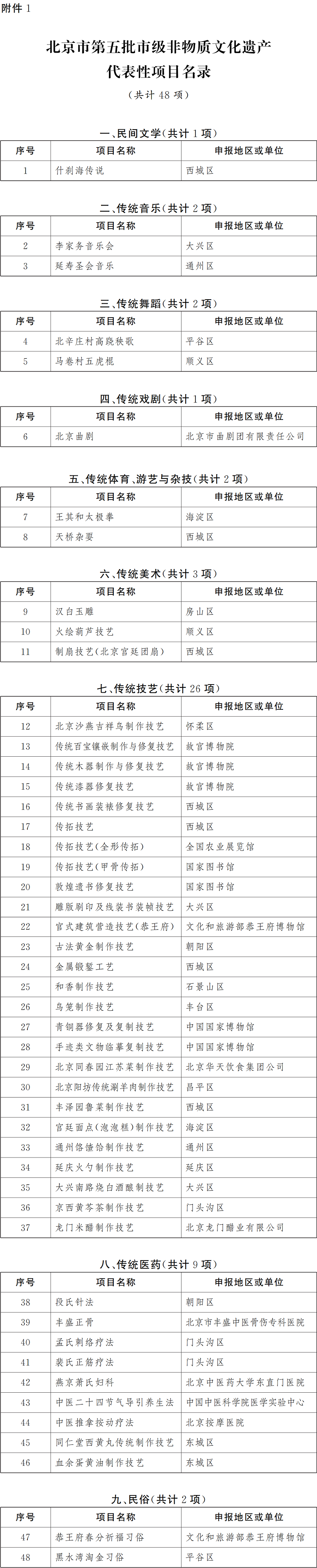 附件:1.北京市第五批市級(jí)非物質(zhì)文化遺產(chǎn)代表性項(xiàng)目名錄