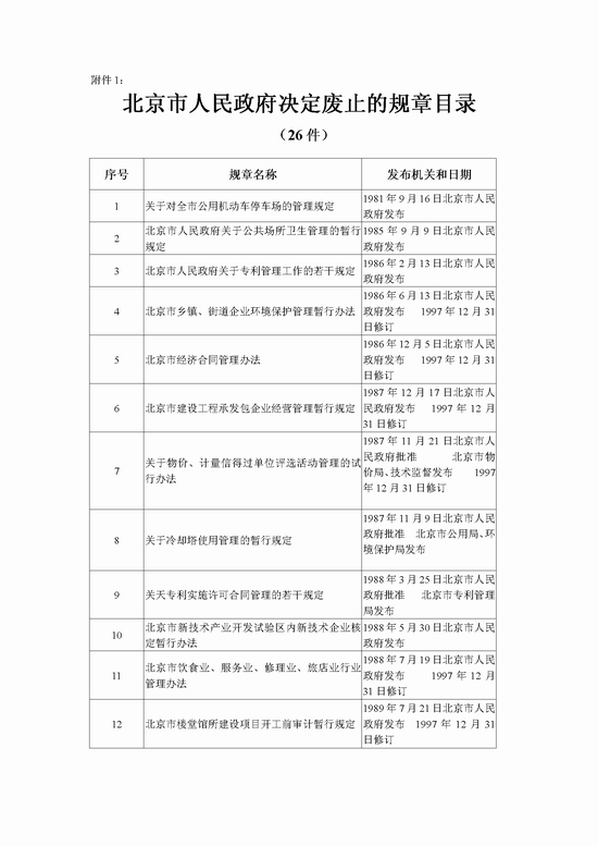 附件1:北京市人民政府決定廢止的規(guī)章目錄(26件)